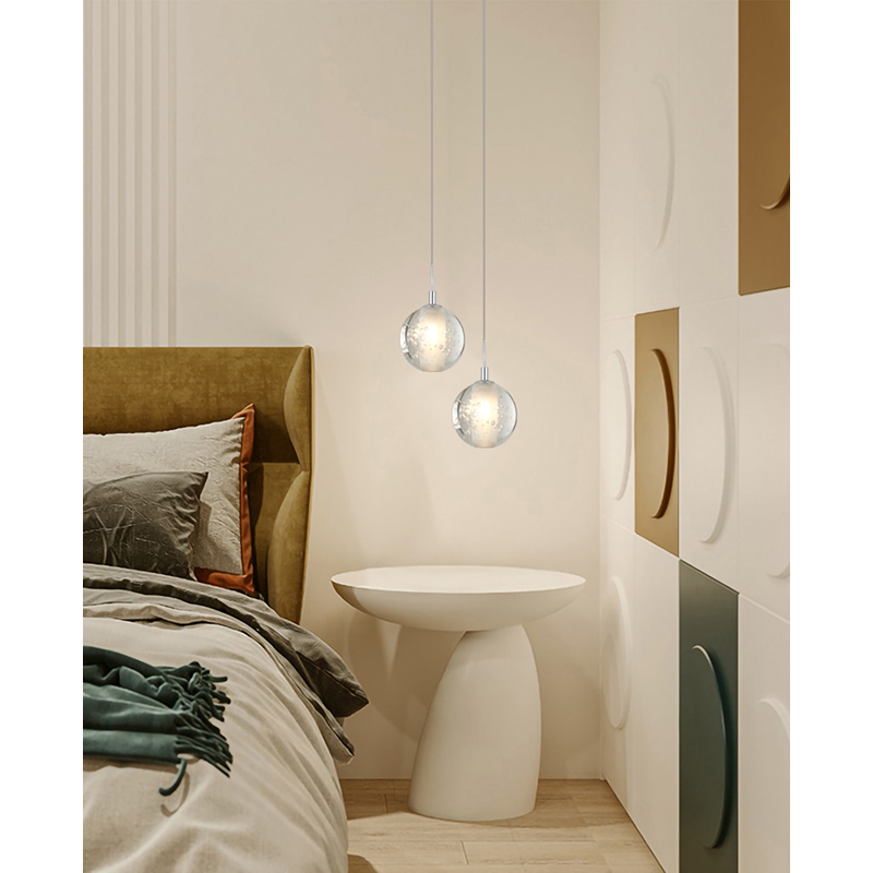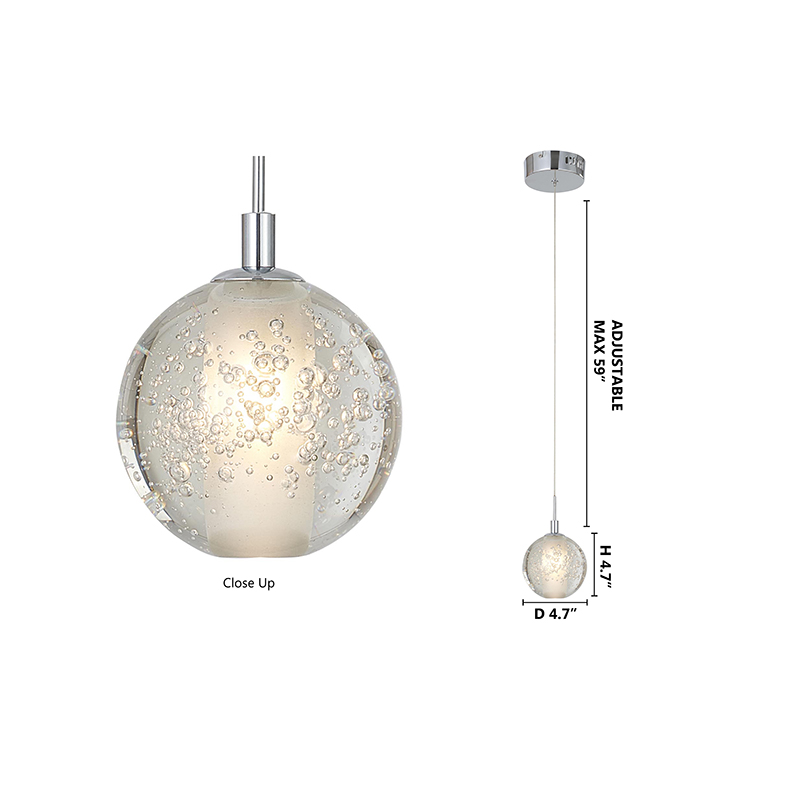 A CLEAR CRYSTAL BUBBLE SINGLE PENDANT LIGHT WITH CHROME HARDWARE