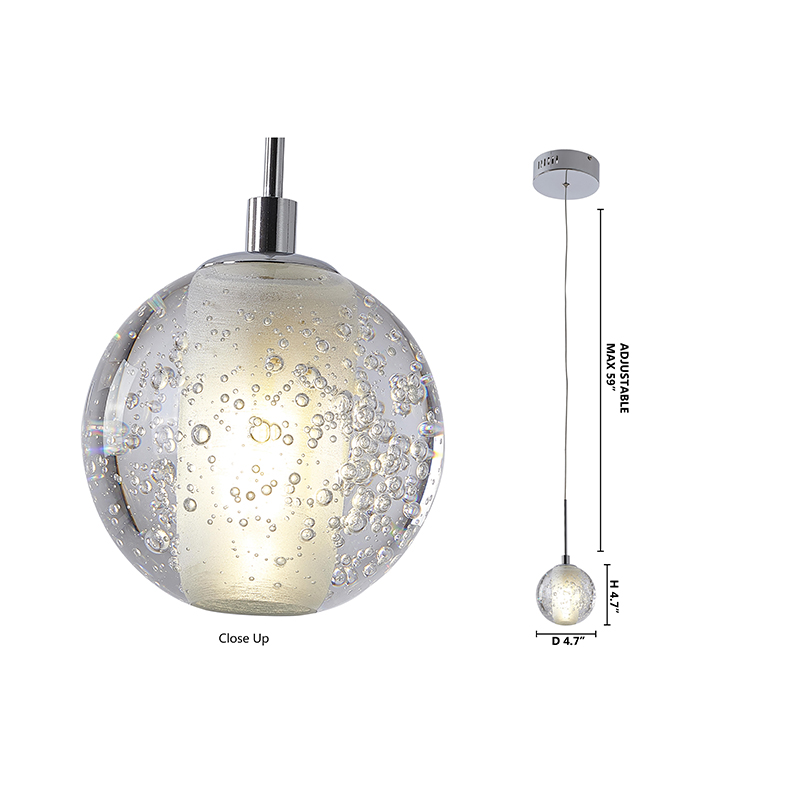 A CLEAR BUBBLE CRYSTAL SINGLE PENDANT LIGHT WITH CHROME HARDWARE