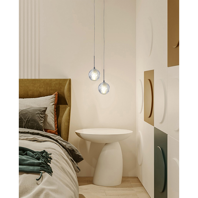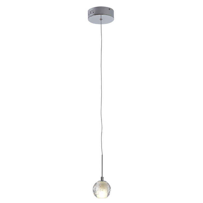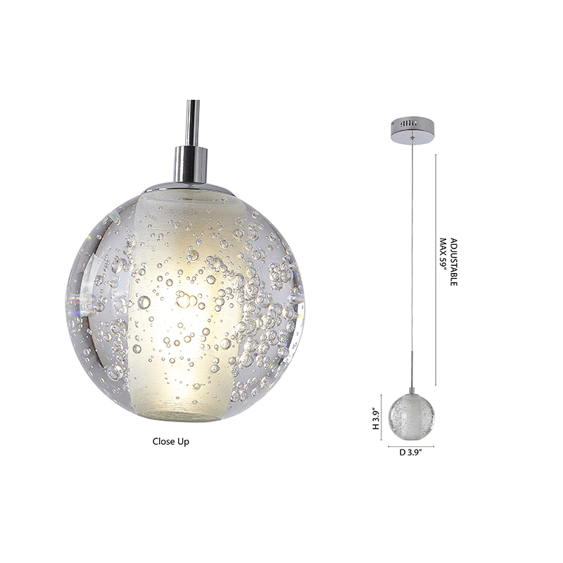 A CLEAR BUBBLE CRYSTAL SINGLE PENDANT LIGHT WITH CHROME HARDWARE