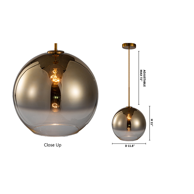 A BRONZED OMBRE SHADE SINGLE PENDANT LIGHT WITH GOLD HARDWARE