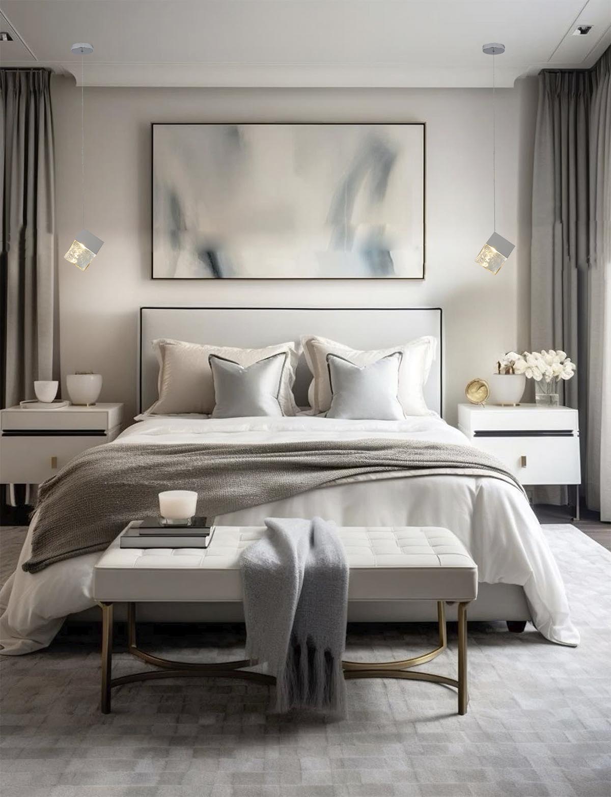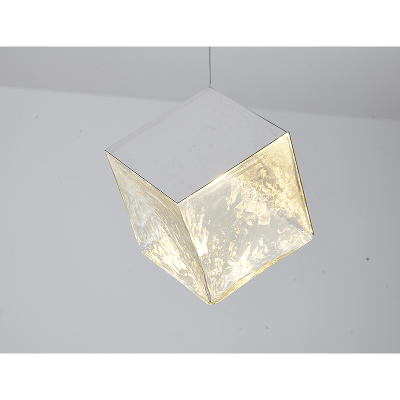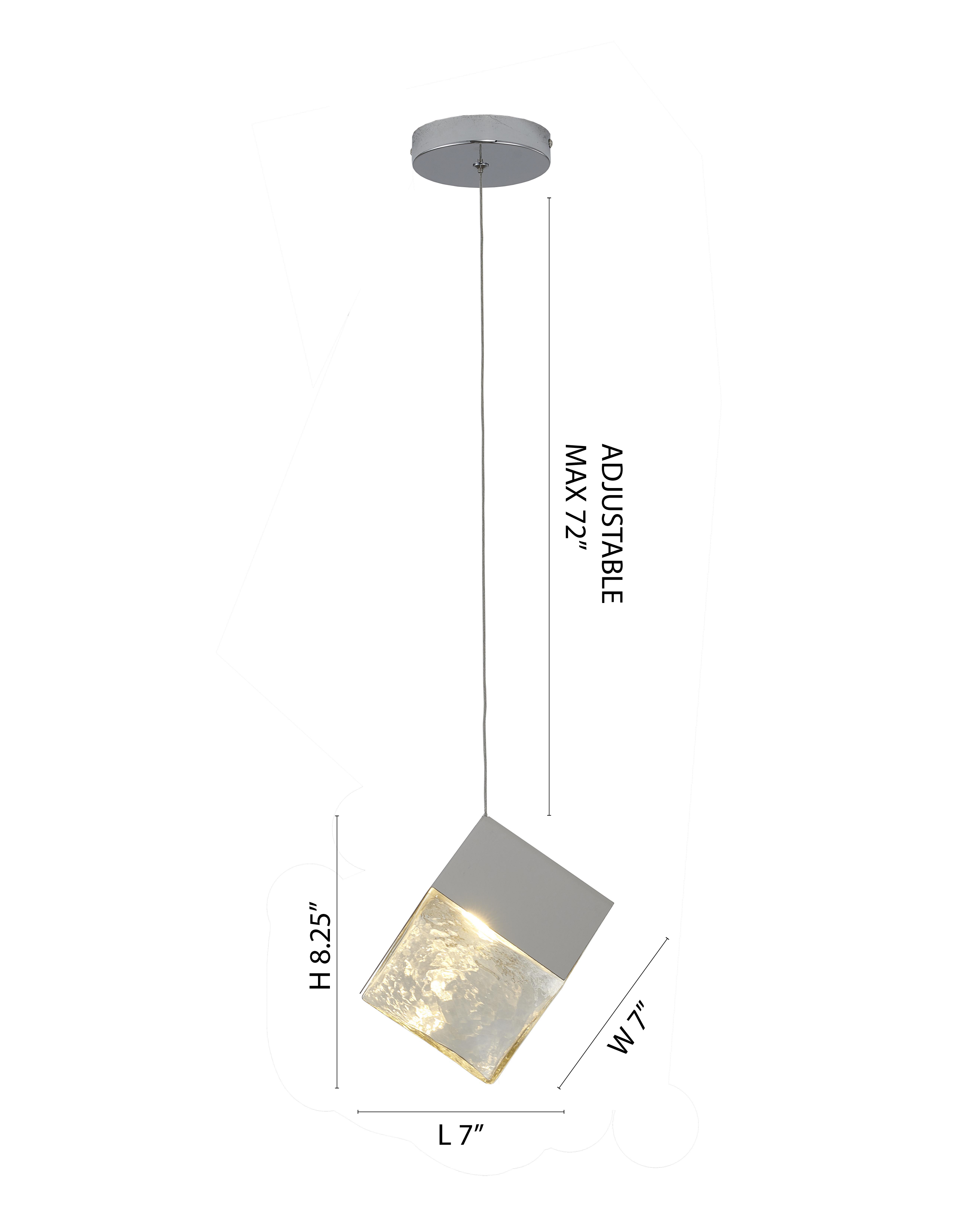 A CHROME FRAME CUBED PENDANT LIGHT WITH CLEAR DISTORTED GLASS