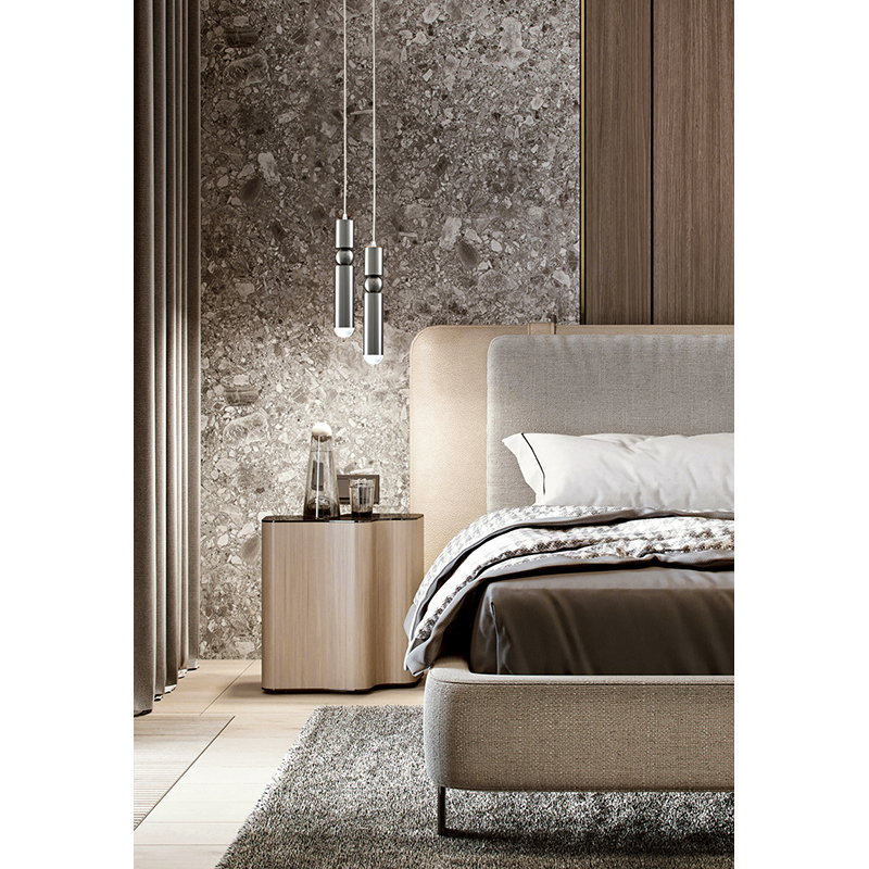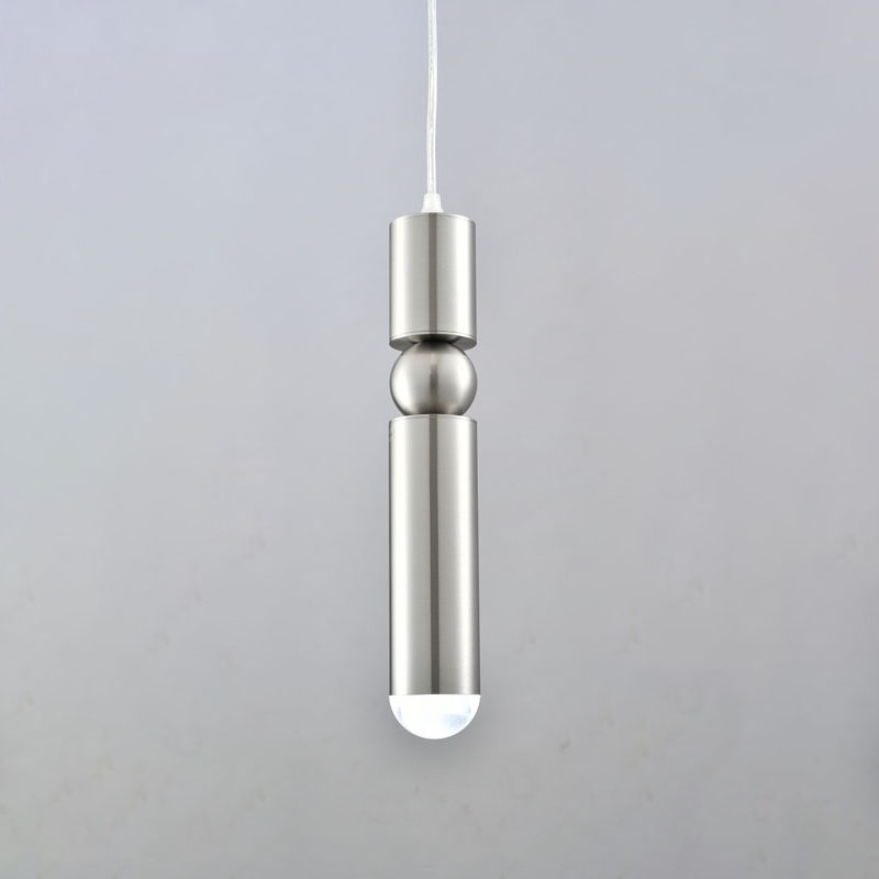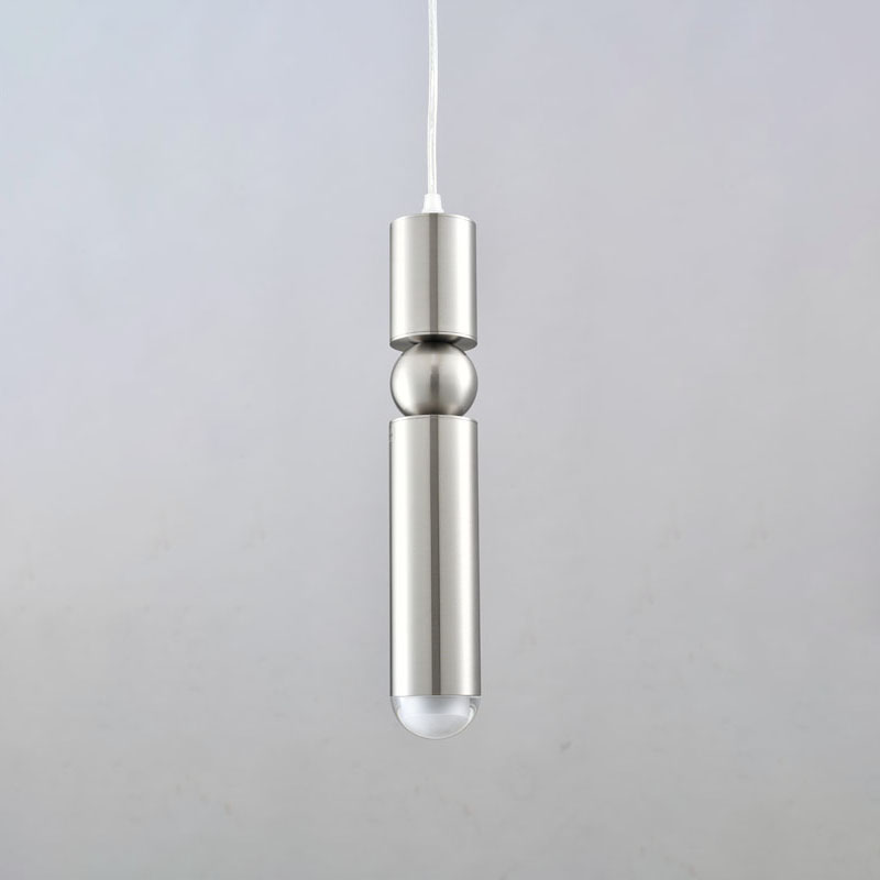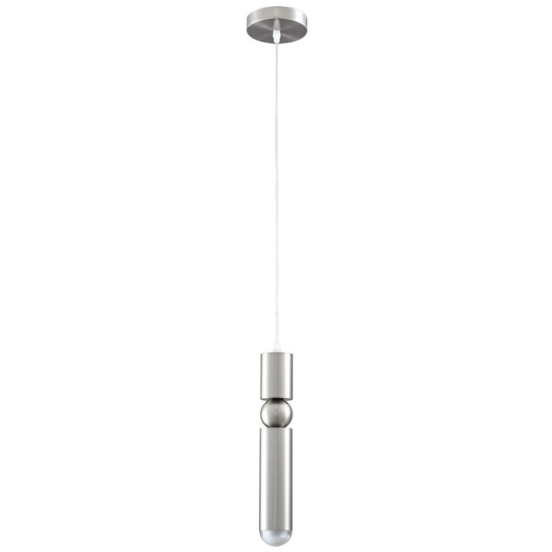 A SHINY NICKEL SINGLE PENDANT LIGHT WITH A FROSTED GLASS DIFFUSER
