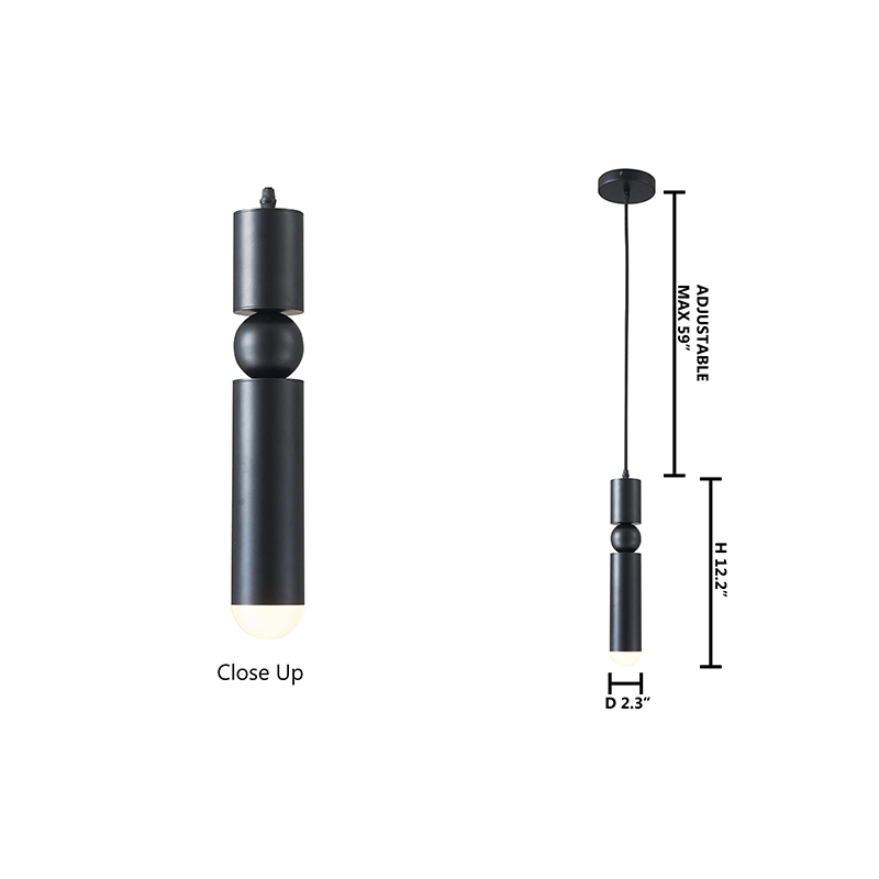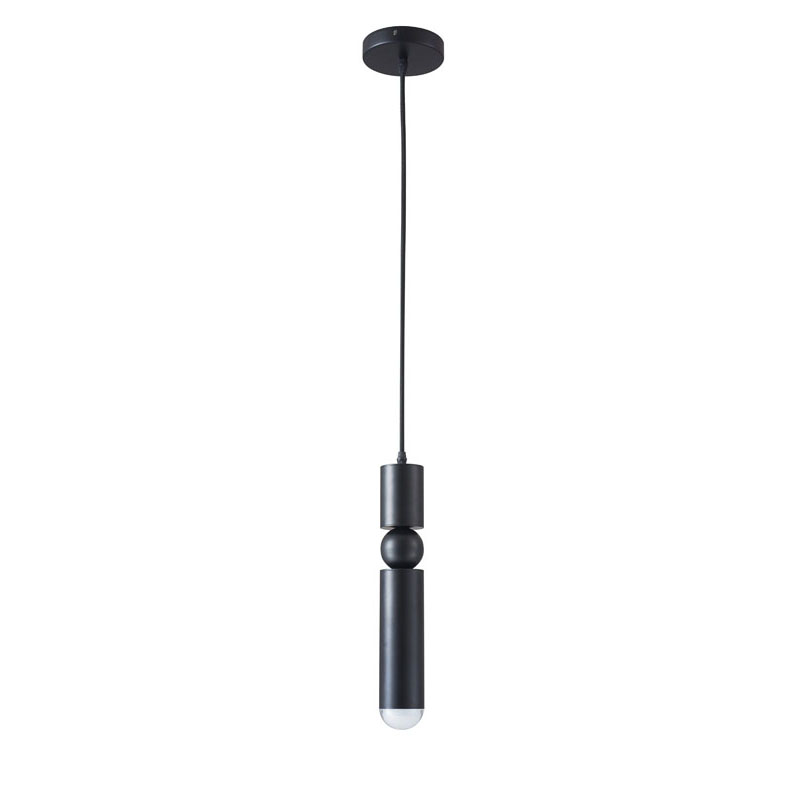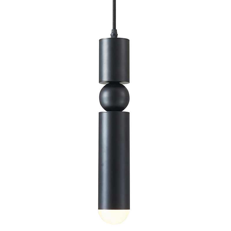 A MATTE BLACK SINGLE PENDANT LIGHT FIXTURE WITH A ROUNDED BASE TIP