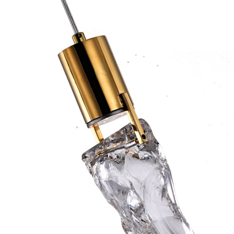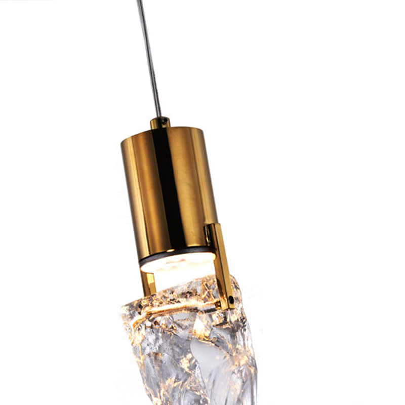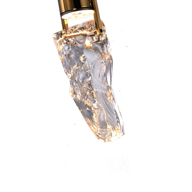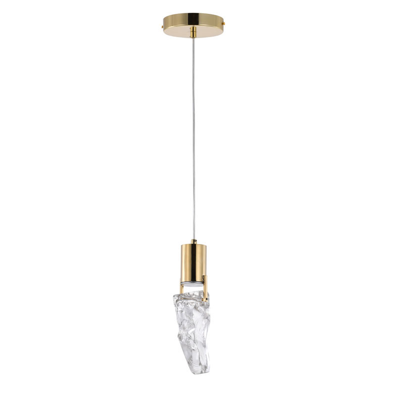 A GOLD FRAME LED PENDANT LIGHT WITH A CLEAR CRYSTAL STONE
