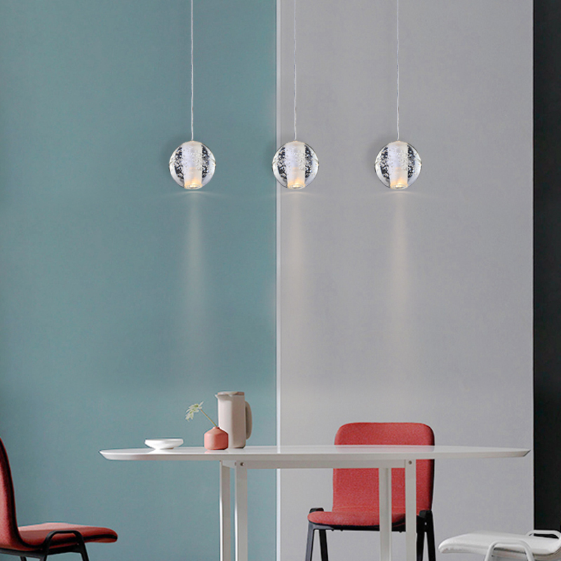 A CLEAR BUBBLE CRYSTAL PENDANT LIGHT WITH CHROME HARDWARE