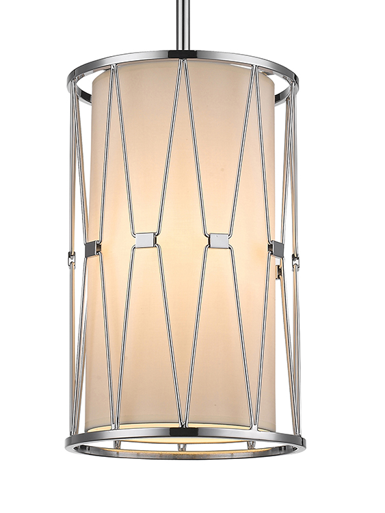 BEIGE CYLINDER SHADE SINGLE PENDANT LIGHT WITH SHINY NICKEL FRAME