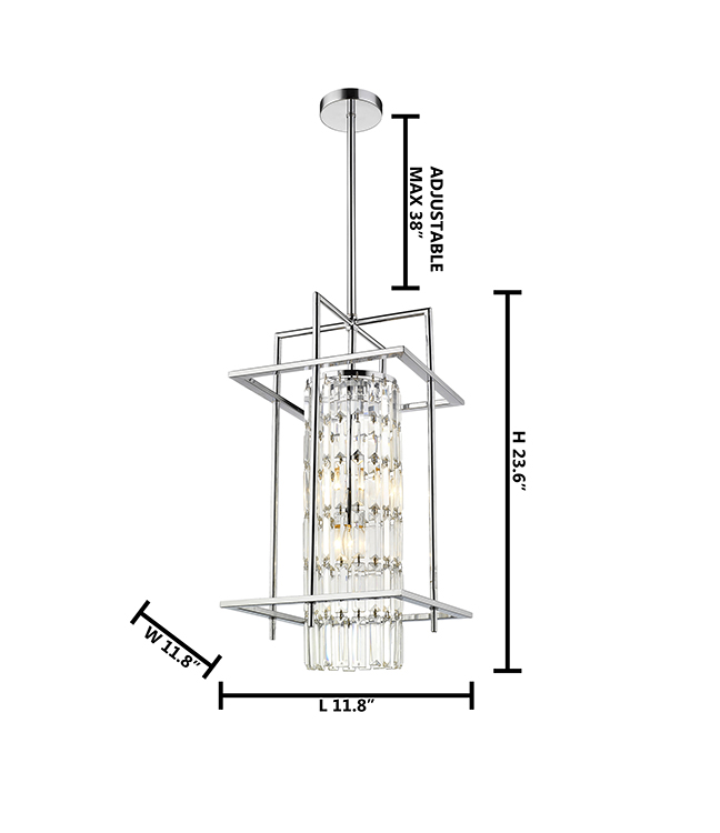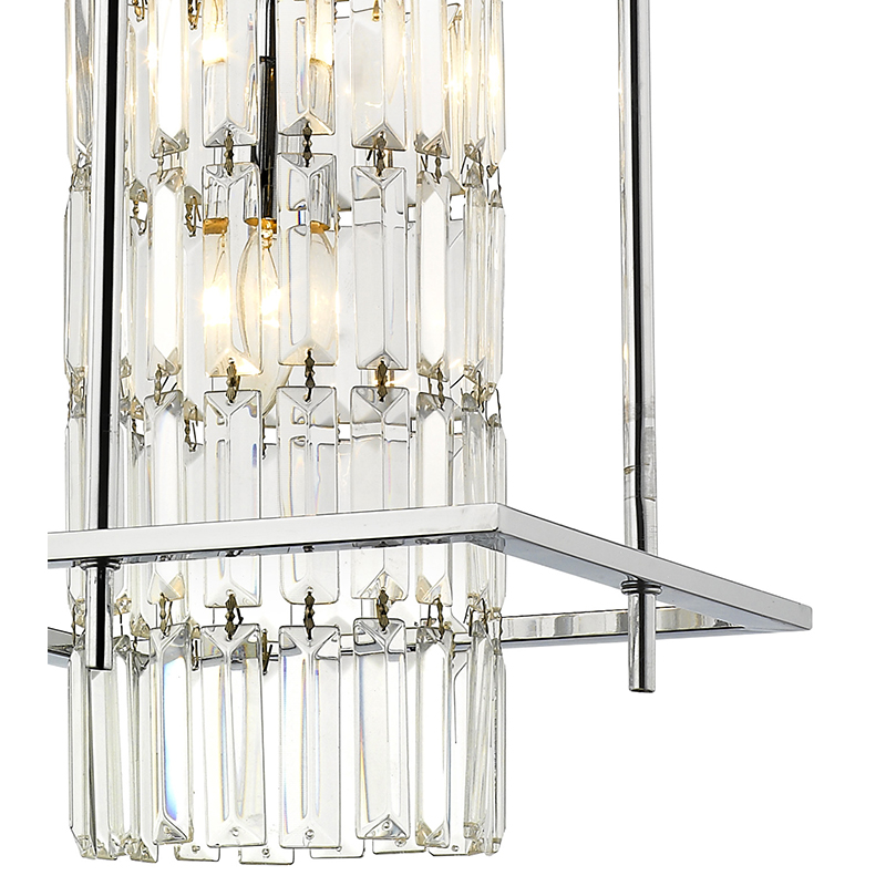 A CHROME FRAME CAGE PENDANT LIGHT WITH CLEAR HANGING CRYSTALS