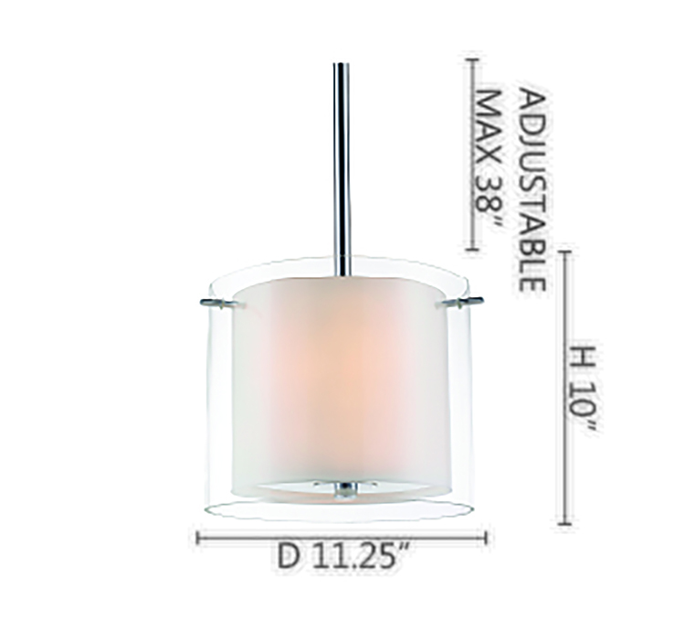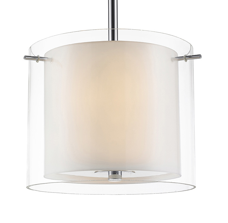 SINGLE PENDANT LIGHT FIXTURE WITH WHITE CYLINDER GLASS INSIDE AND CHROME FRAME