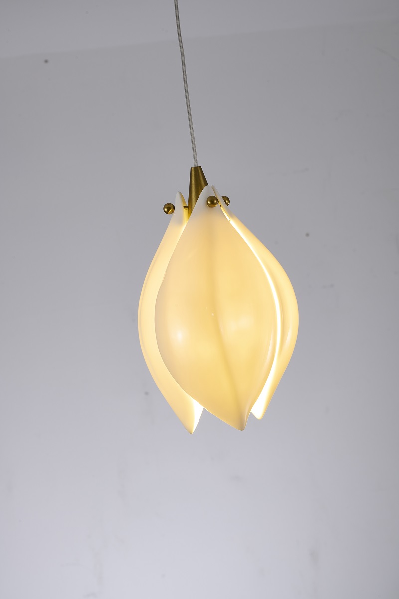 BRONZE METAL FRAME PENDANT WITH A CREAM CERAMIC FLOWER