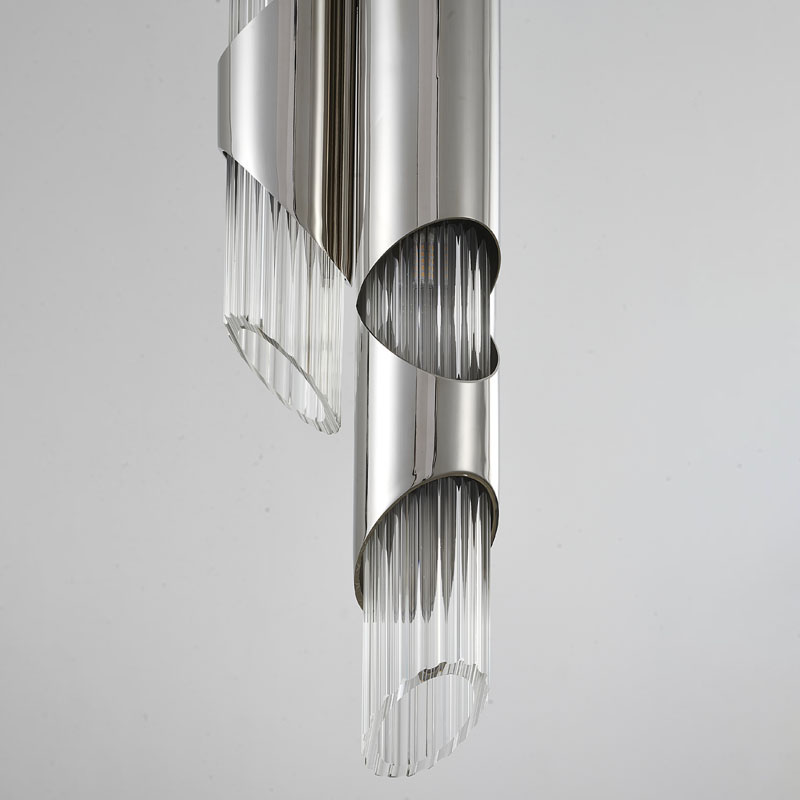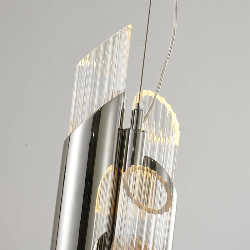 A CHROME STAINLESS STEEL PENDANT LIGHT WITH A CLEAR GLASS SHADE