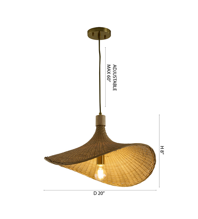 BRASS IRON PENDANT WITH A NATURE RATTAN SHADE