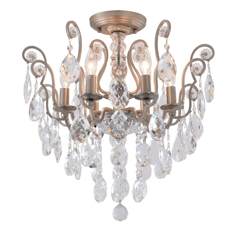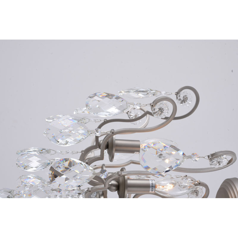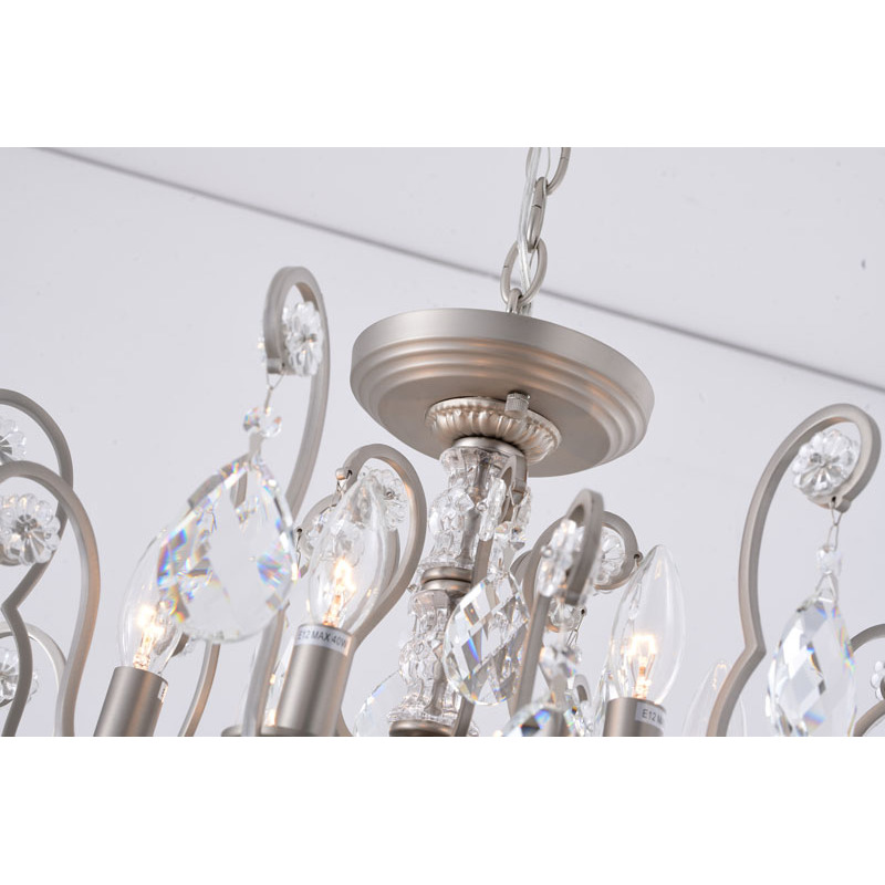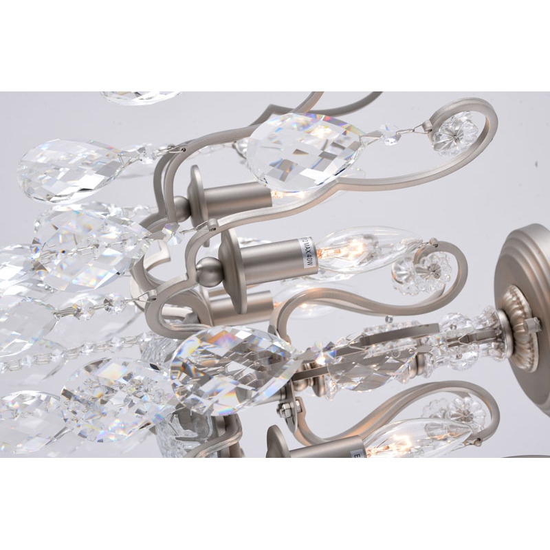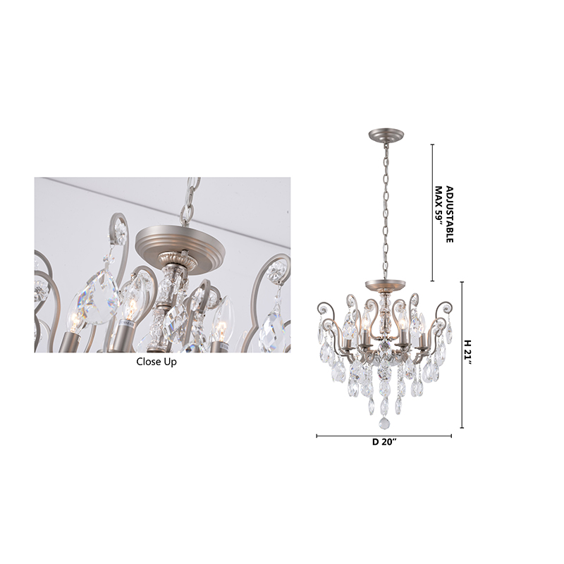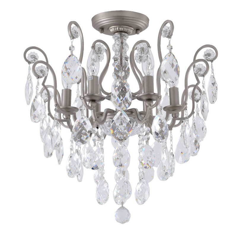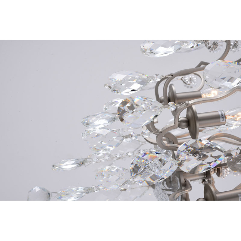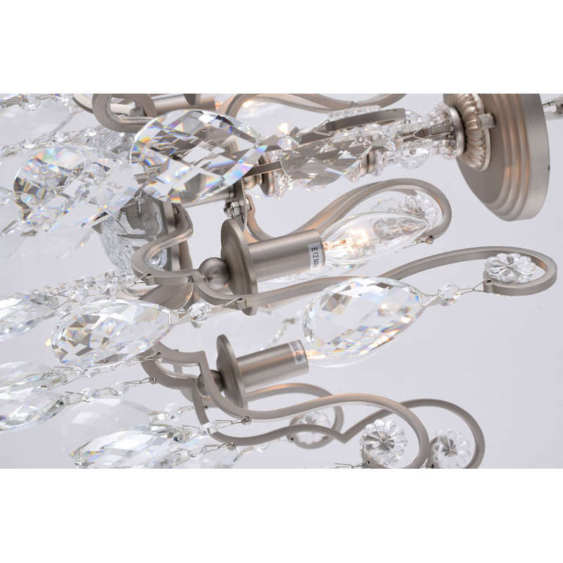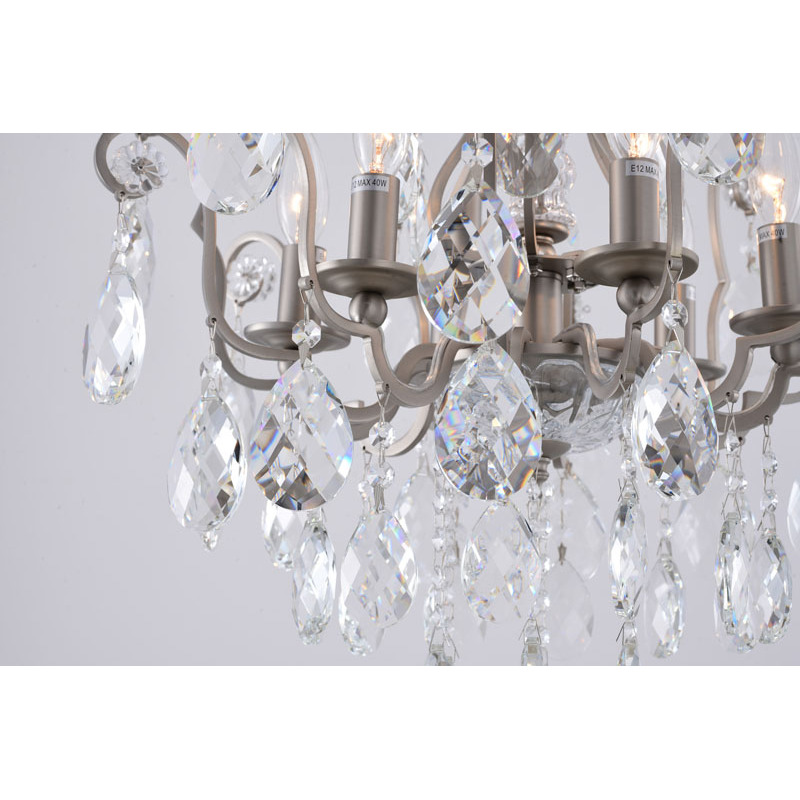 A PEWTER FRAME CHANDELIER WITH CLEAR HANGING CRYSTALS AND GLASS ACCENTS