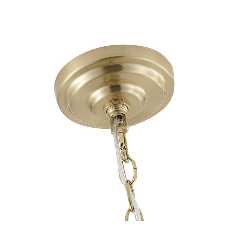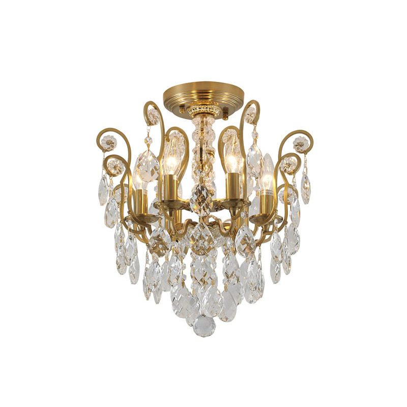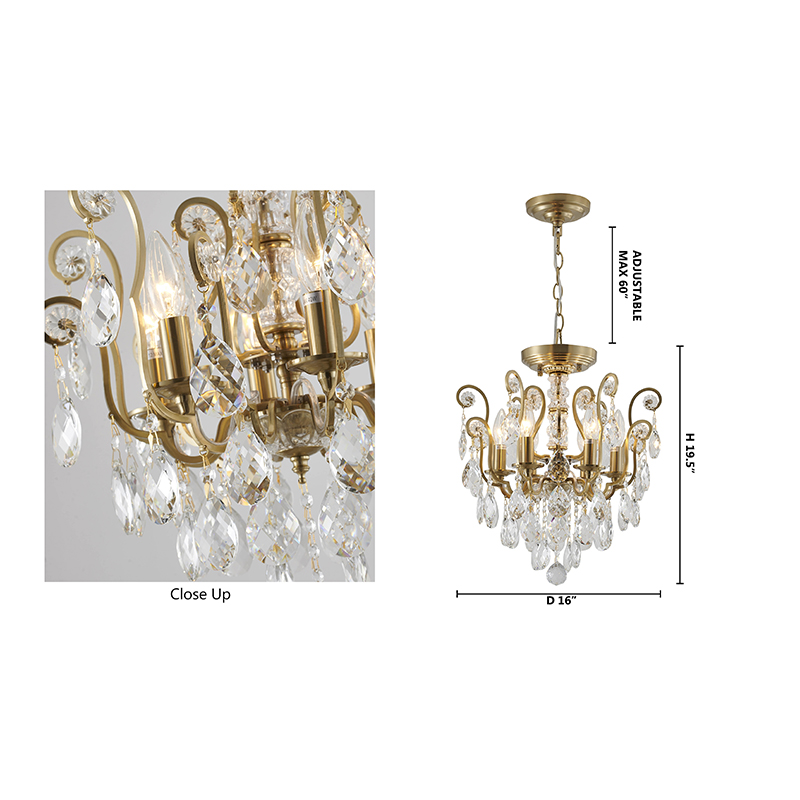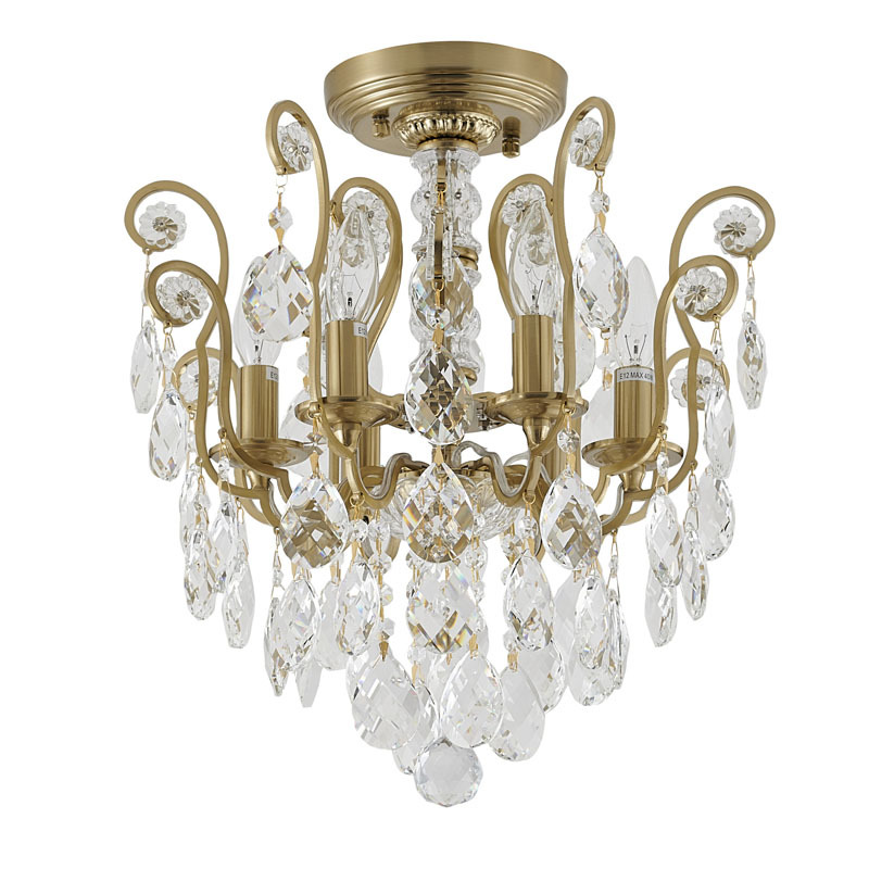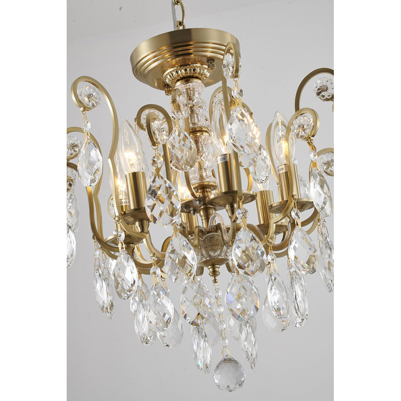 AN ANTIQUE BRASS FRAME CHANDELIER WITH CLEAR HANGING CRYSTALS