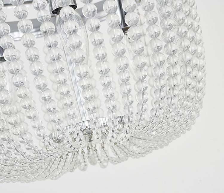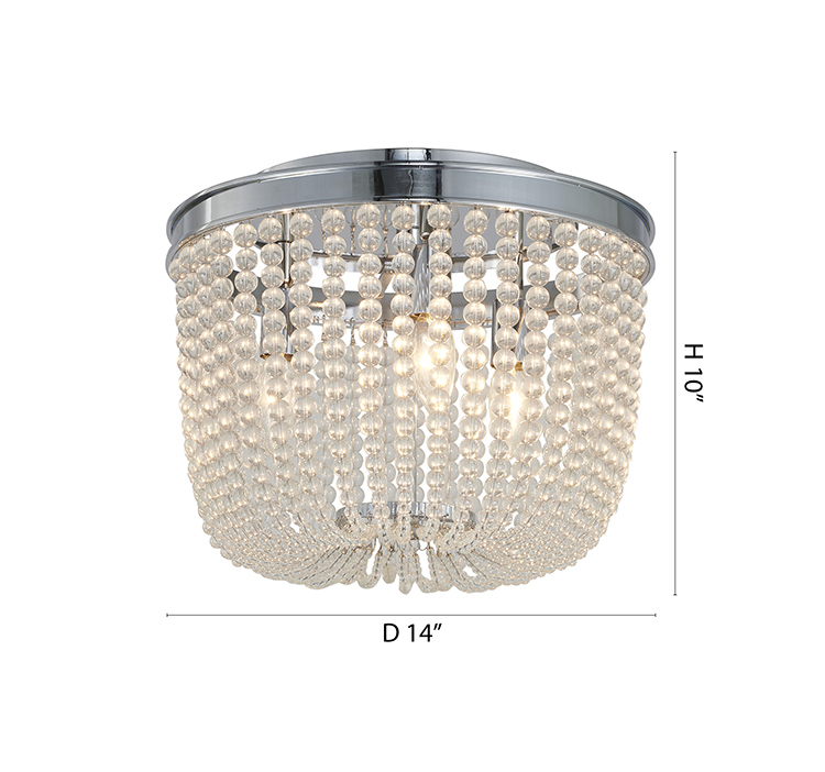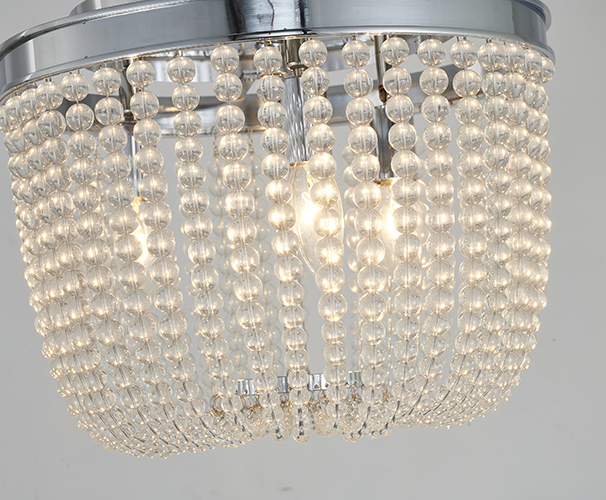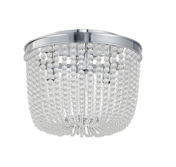 A CHROME FRAME SEMI FLUSHMOUNT WITH CLEAR HANGING GLASS BEADS