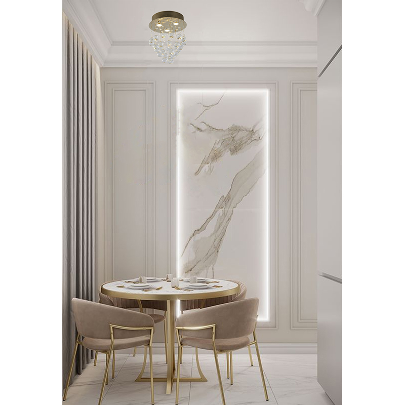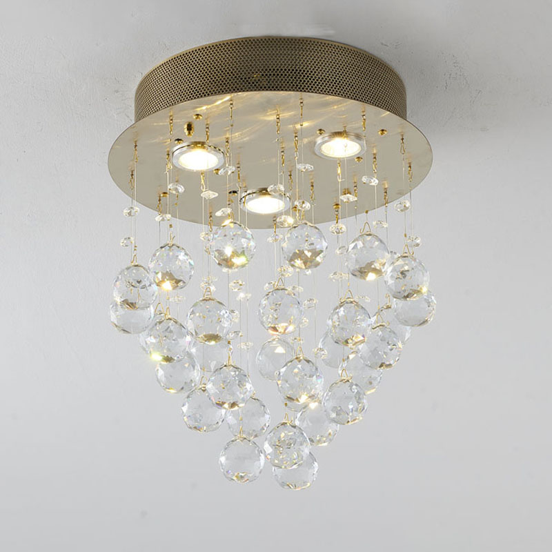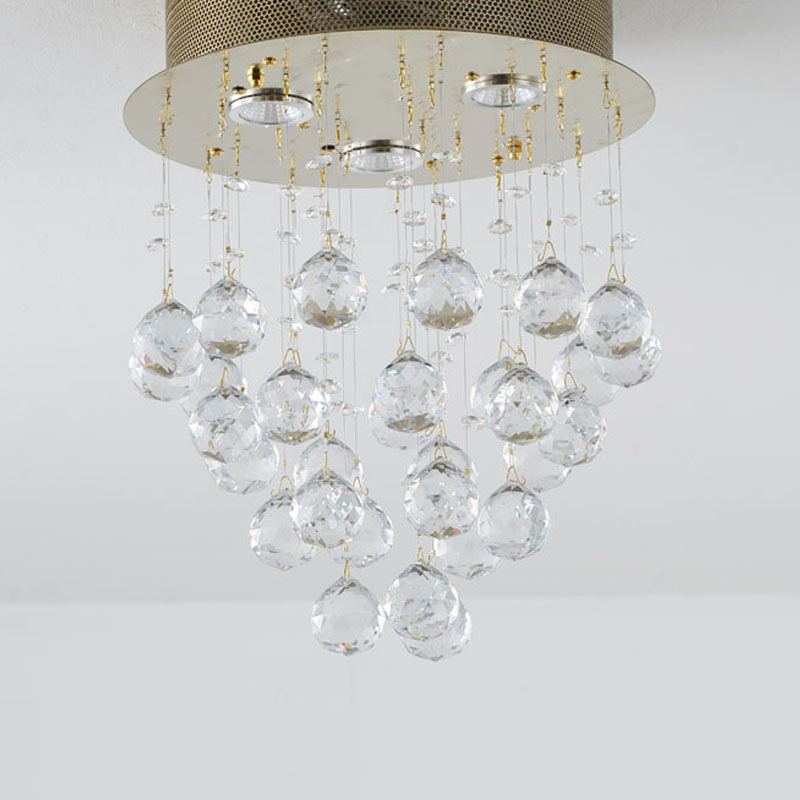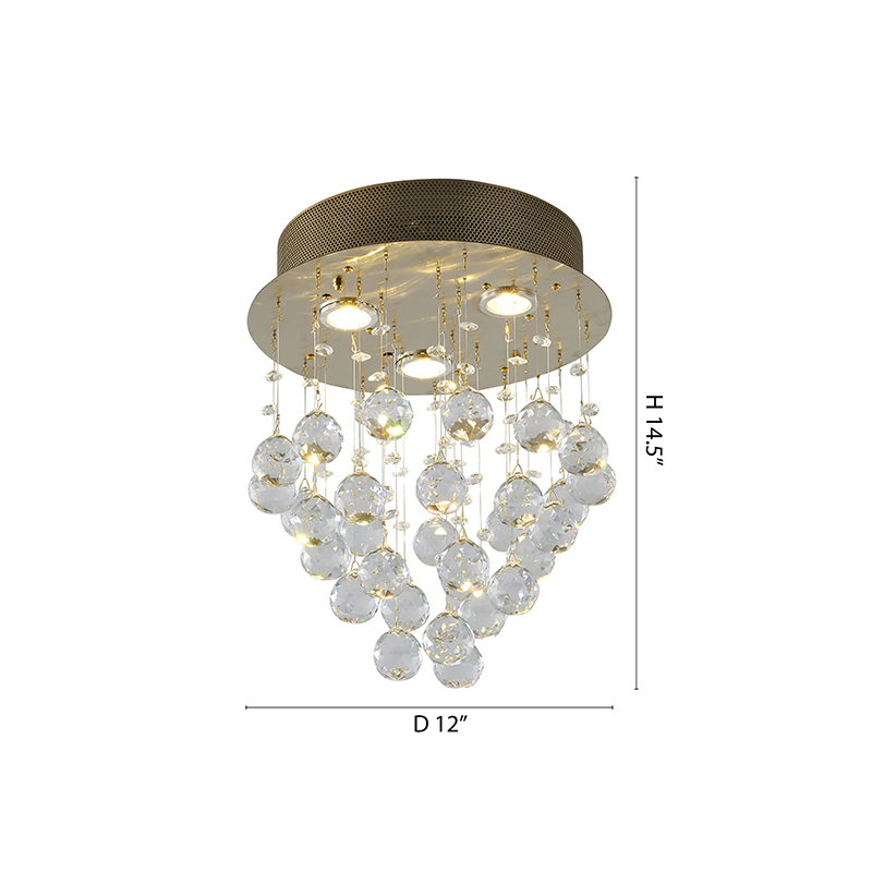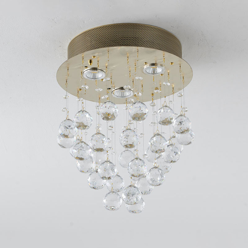 A CLEAR CRYSTAL SEMI FLUSH MOUNT WITH GOLD HARDWARE