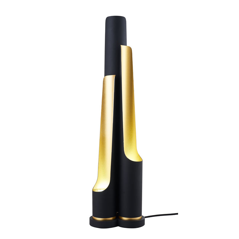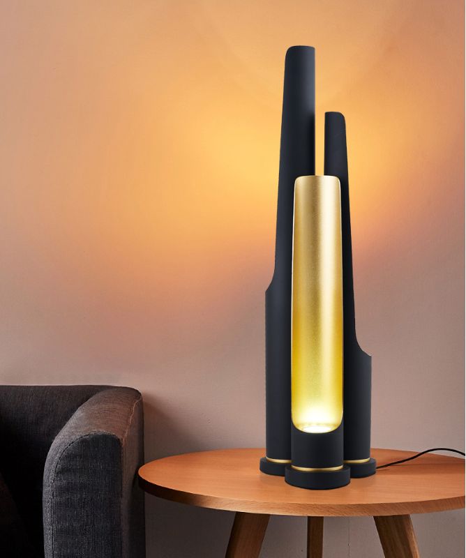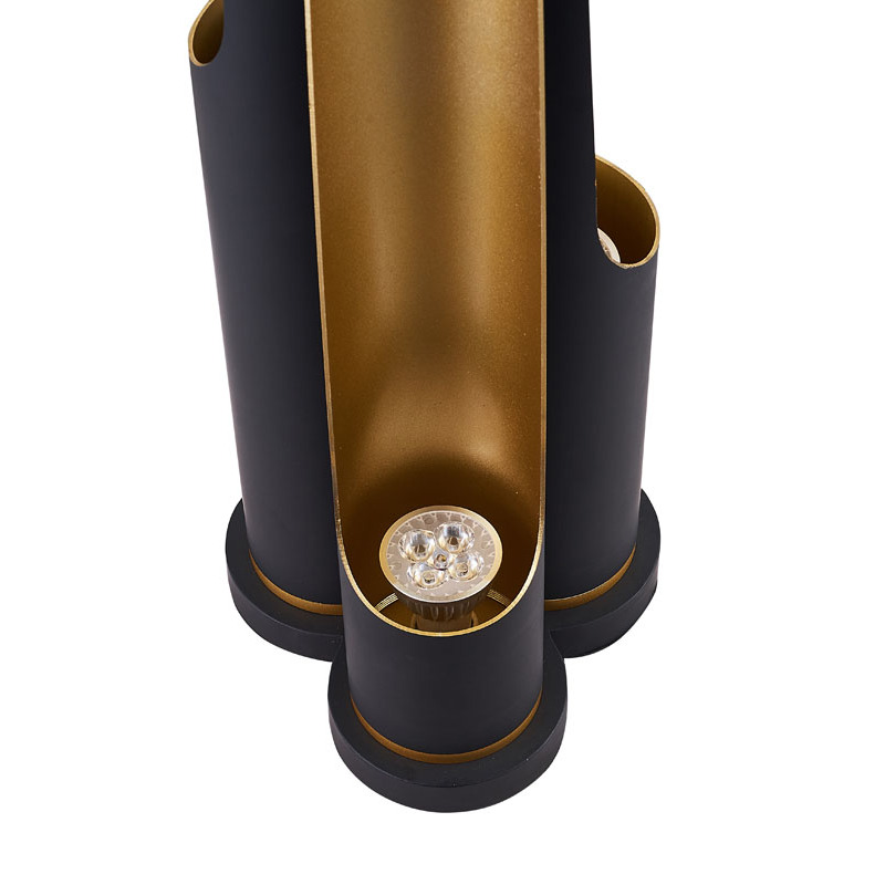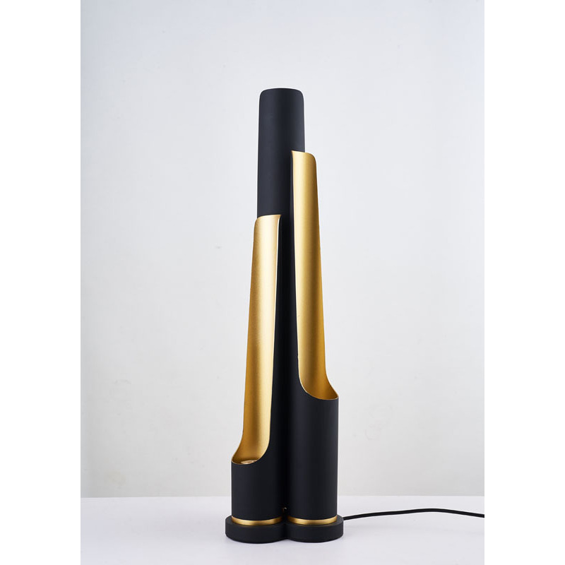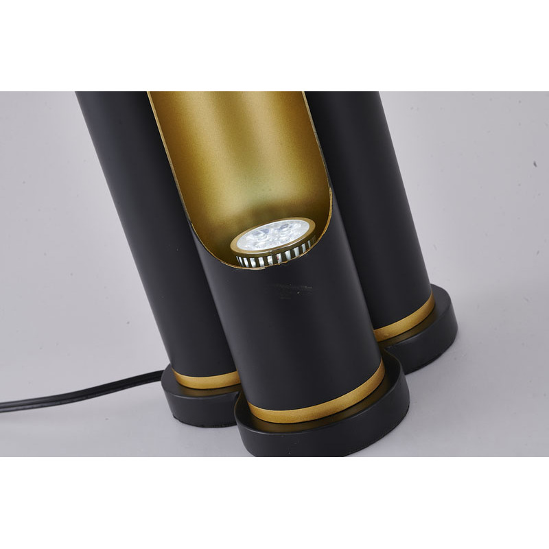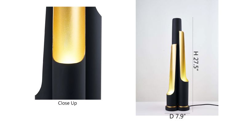 The transitional table lamp is a stylish and functional lighting fixture. It features a matte black exterior and a luxurious gold-colored interior, giving it a unique and sophisticated appearance. The lamp has a compact design, with a diameter of 7.9 inches and a height of 27.5 inches, making it perfect for bedroom, living room, and office. The lamp has 3xGU10 sockets (Bulbs Not Included), each with a 40W rating, allowing you to use a variety of light bulbs to achieve the desired level of brightness.