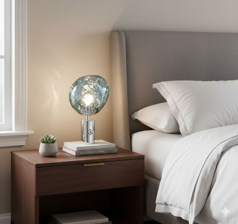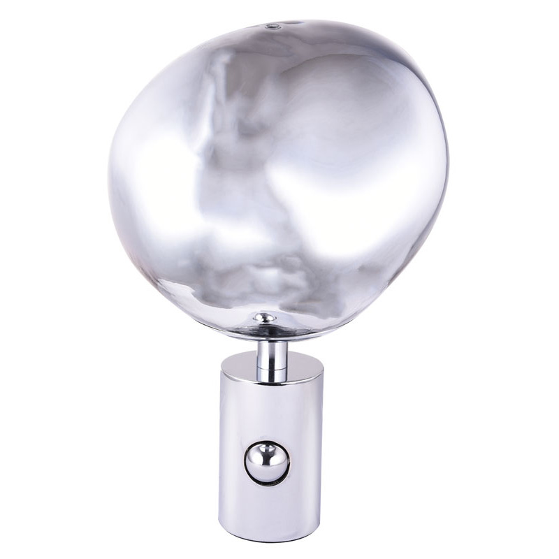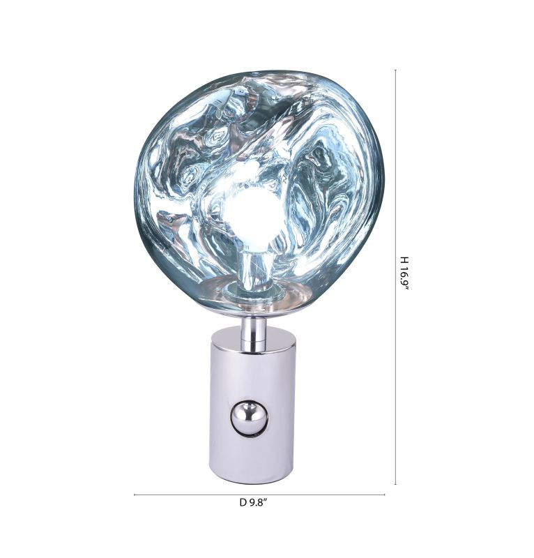 This table lamp is a luxurious and eye-catching table lamp that combines transitional design with a touch of elegance. The chrome orb-shaped shade is made of acrylic, giving it a sleek and sophisticated appearance. The lamp's silver metal base is sturdy and stable, making it perfect for placing on a bedside table, desk, or coffee table. The lamp takes a standard E26 bulb (Bulbs Not Included) and has a maximum wattage of 60W, making it easy to replace and adjust to your desired level of brightness. With a diameter of 9.8 inches and a height of 16.9 inches, this lamp is compact and space-efficient, making it a great addition to any room such as living room, bedroom, or reading room.