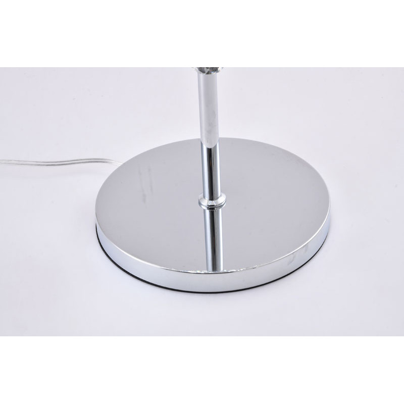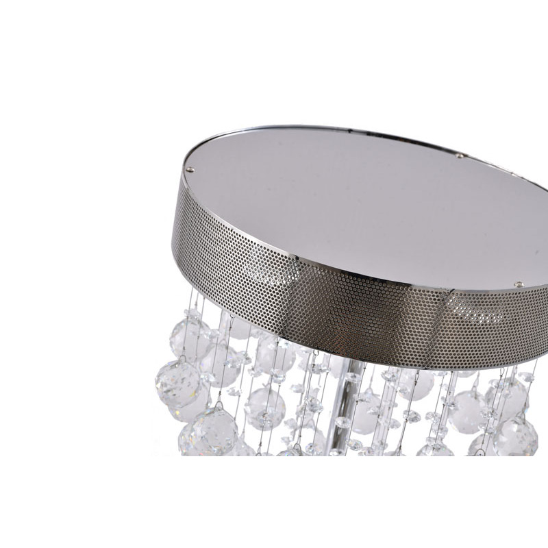 A CHROME FRAMED TABLE LAMP WITH CLEAR HANGING CRYSTALS