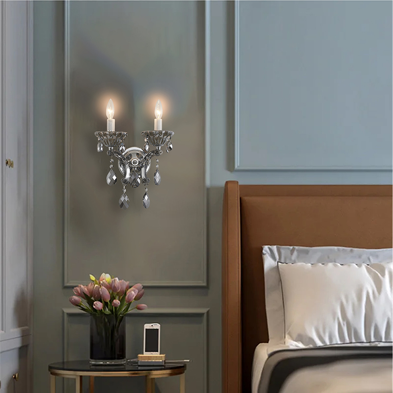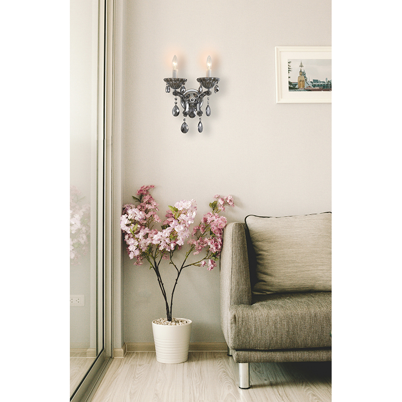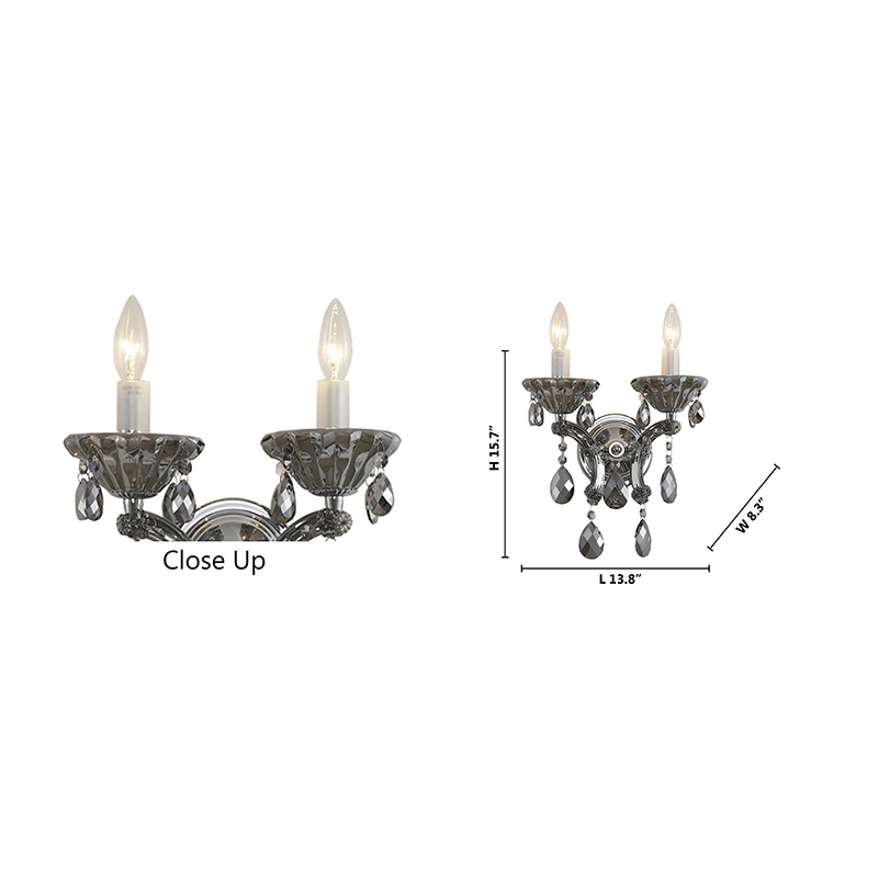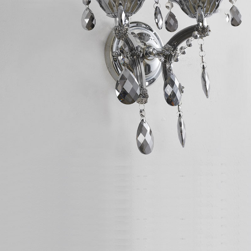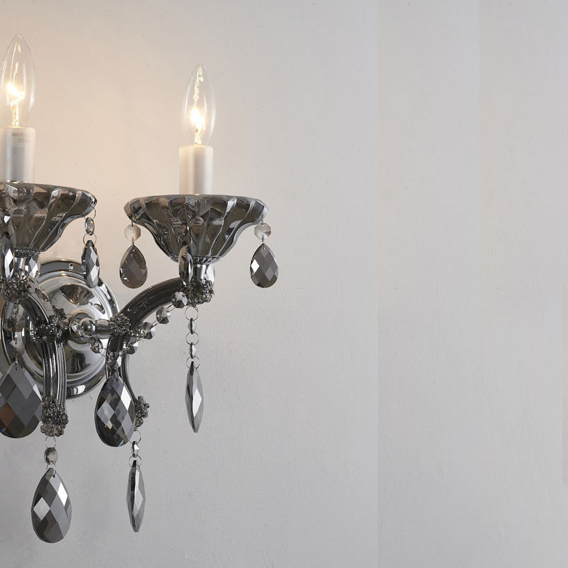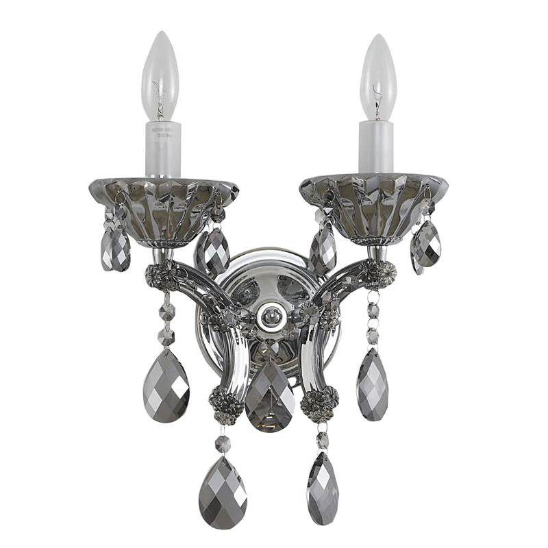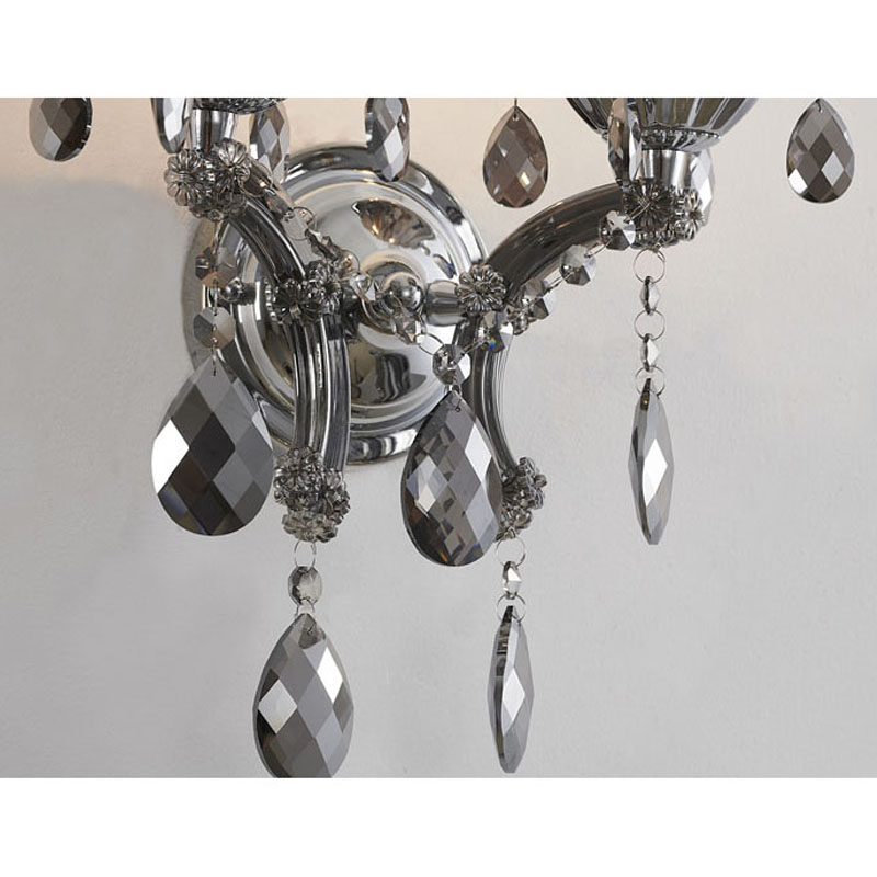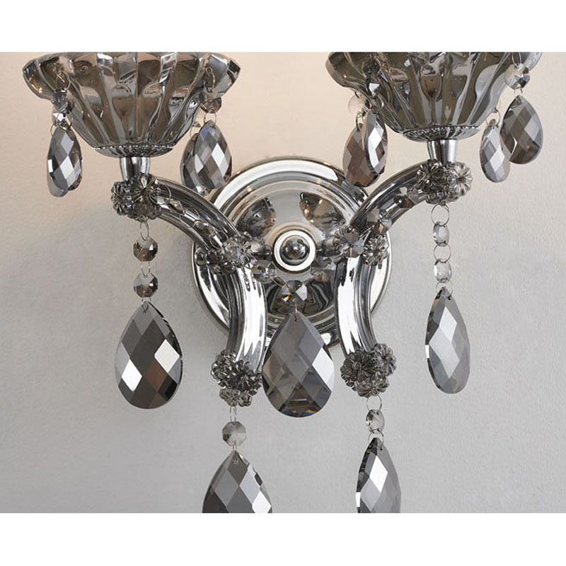 A SMOKE CRYSTAL WALL SCONCE WITH CHROME HARDWARE