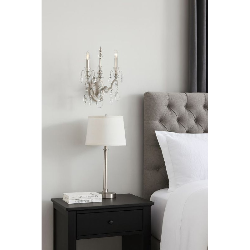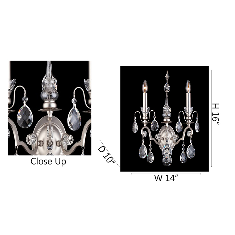 2 LIGHT PEWTER FRAME WITH CLEAR CRYSTAL WALL SCONCE