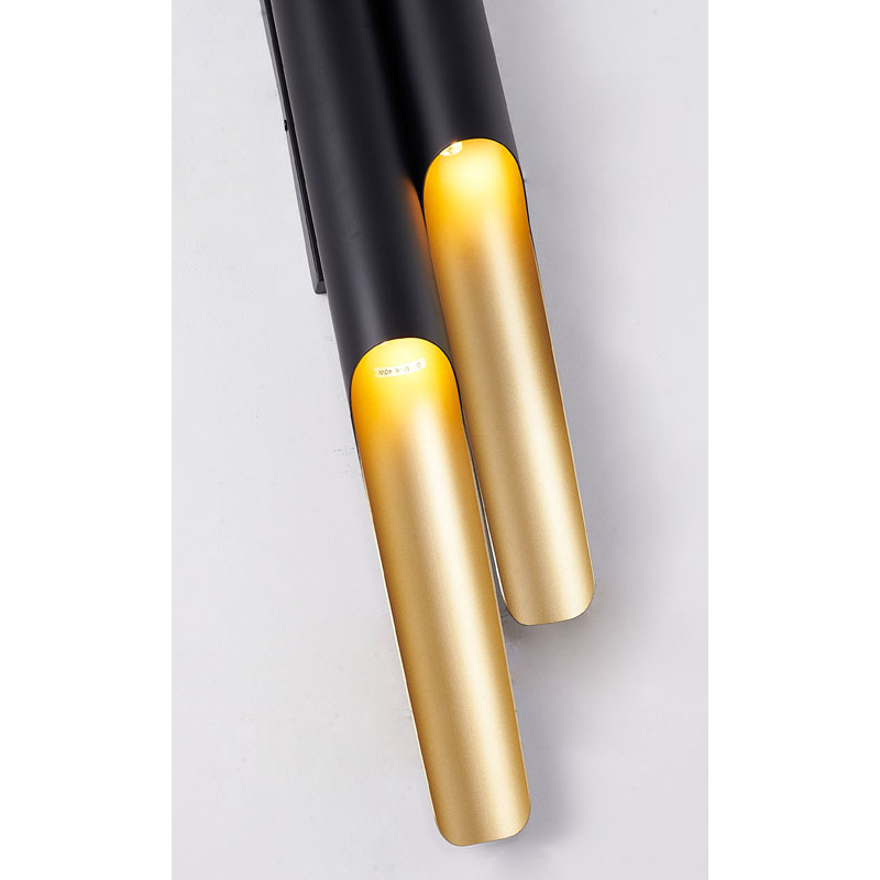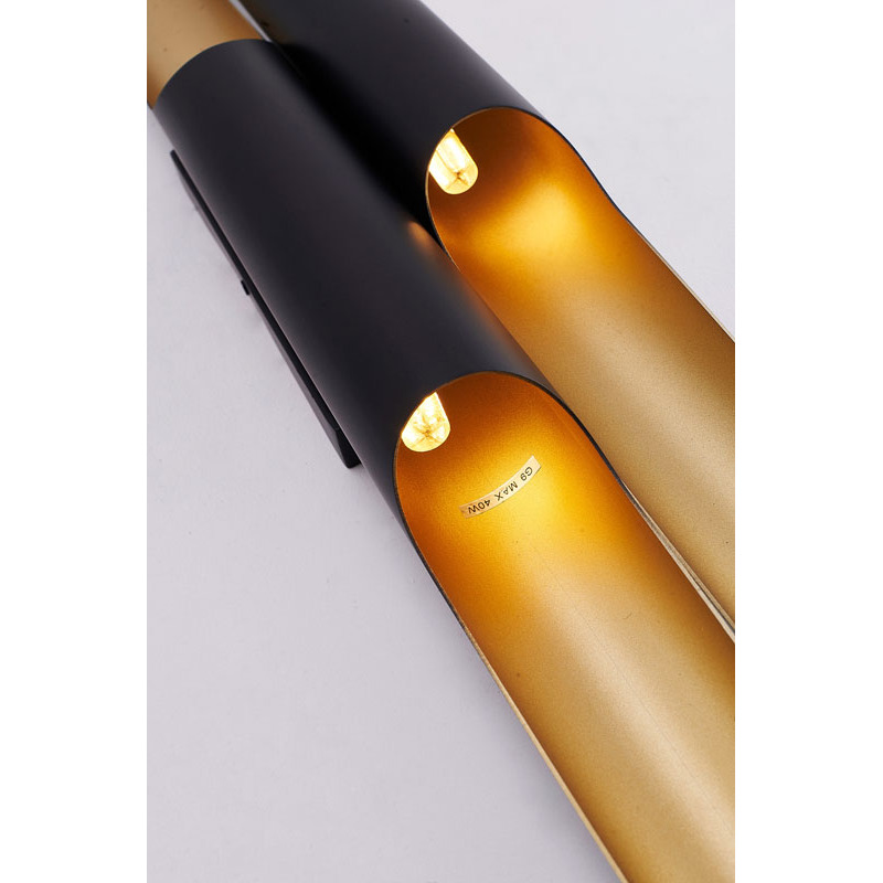 A MATTE BLACK FRAME WALL SCONCE WITH A GOLD INTERIOR