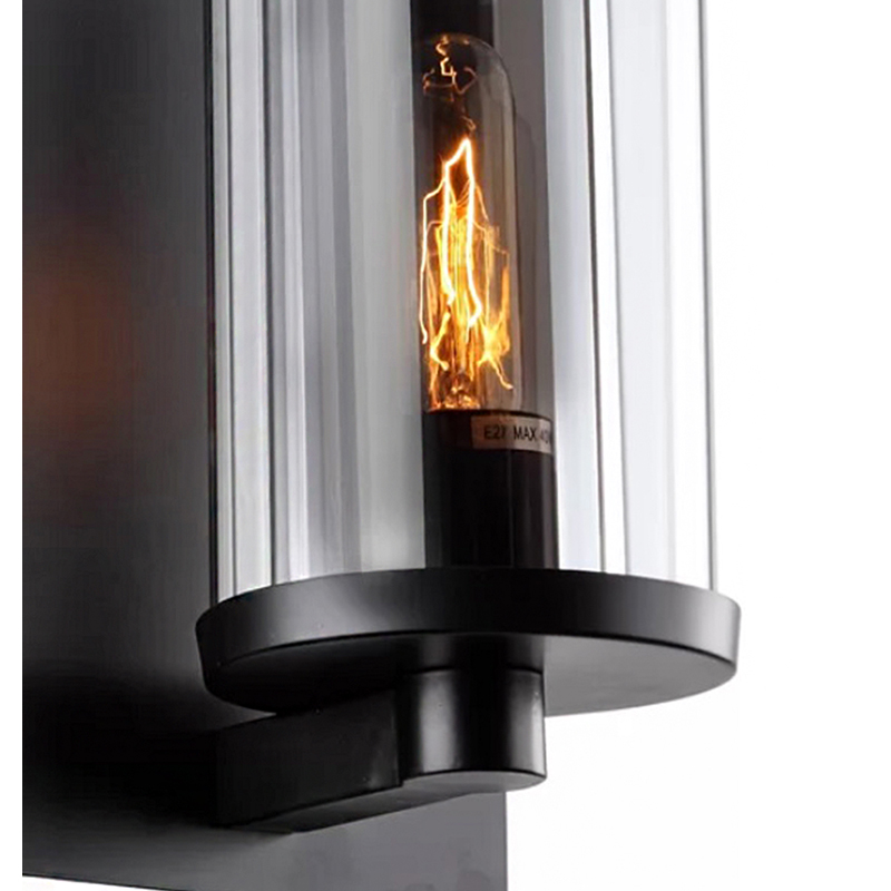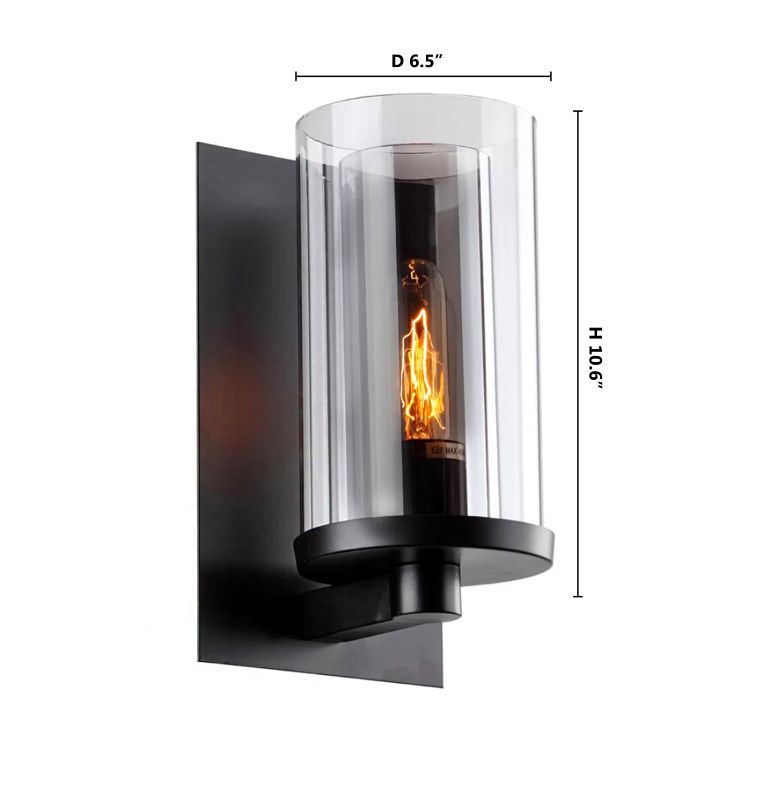 A BLACK METAL FRAME WALL SCONCE WITH A CLEAR & SMOKE GLASS SHADE