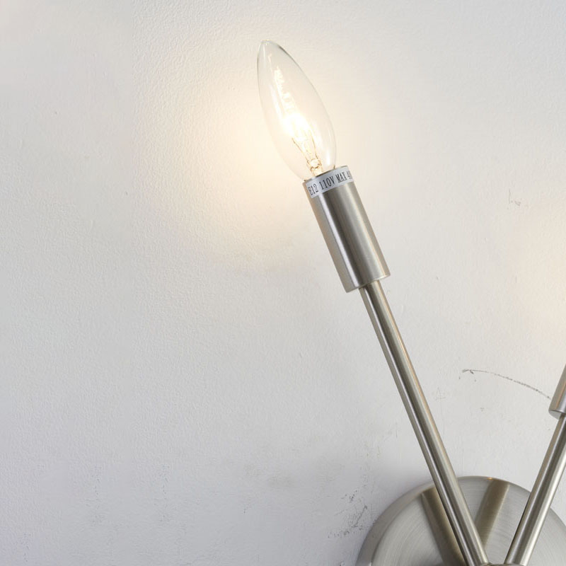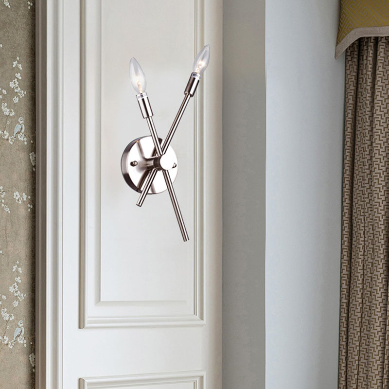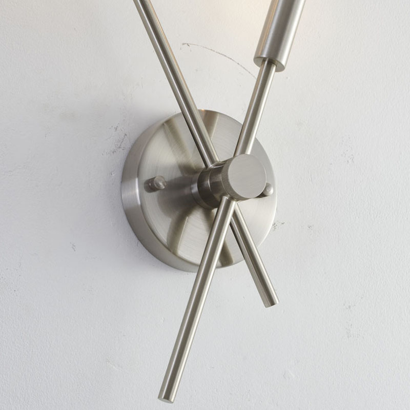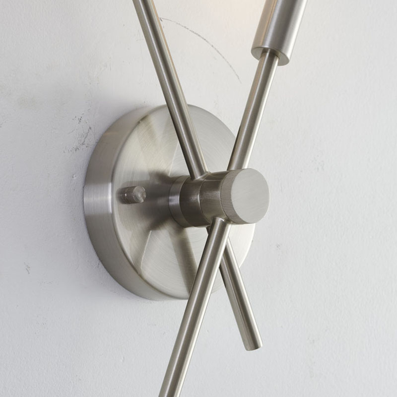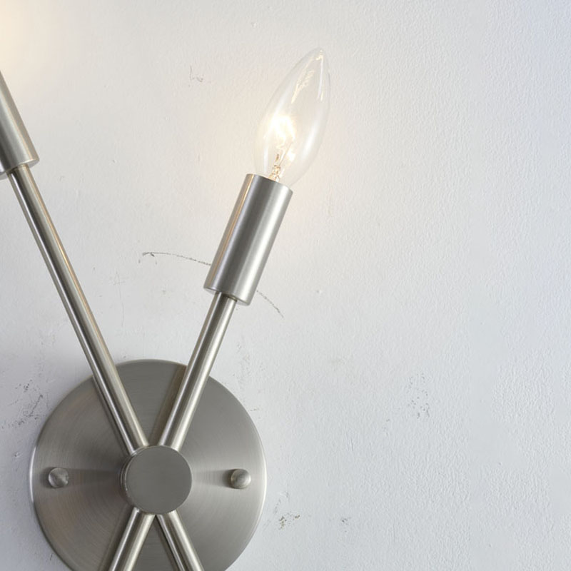 A TWO PIPE ARM WALL SCONCE IN A SHINY NICKEL FINISH