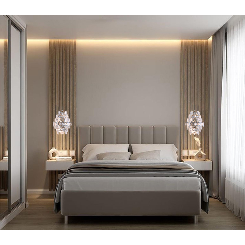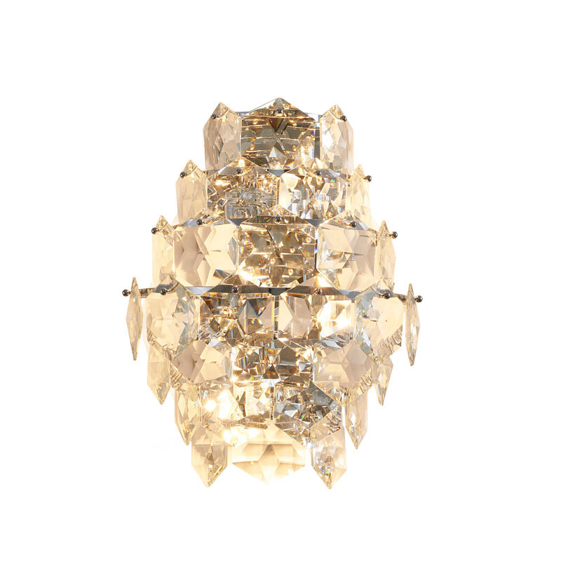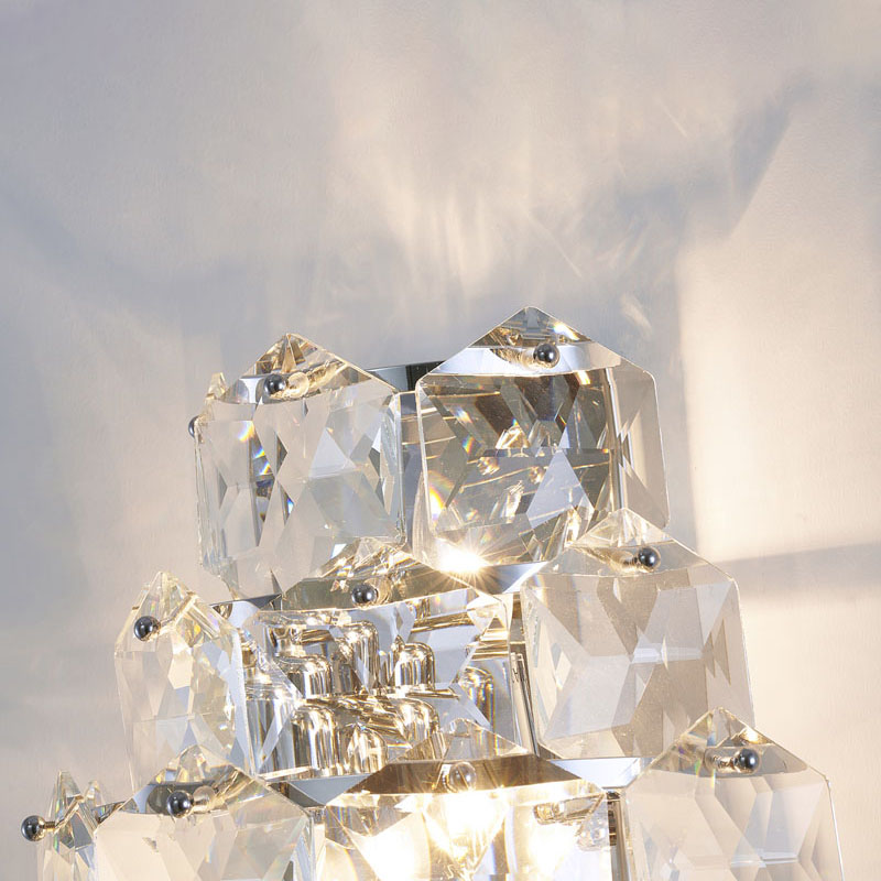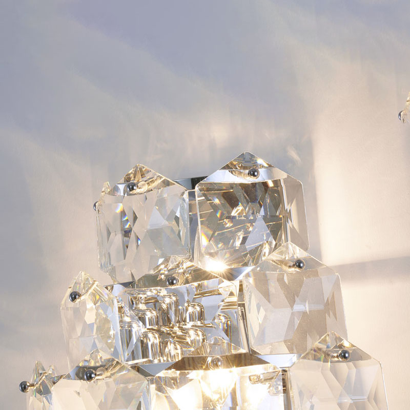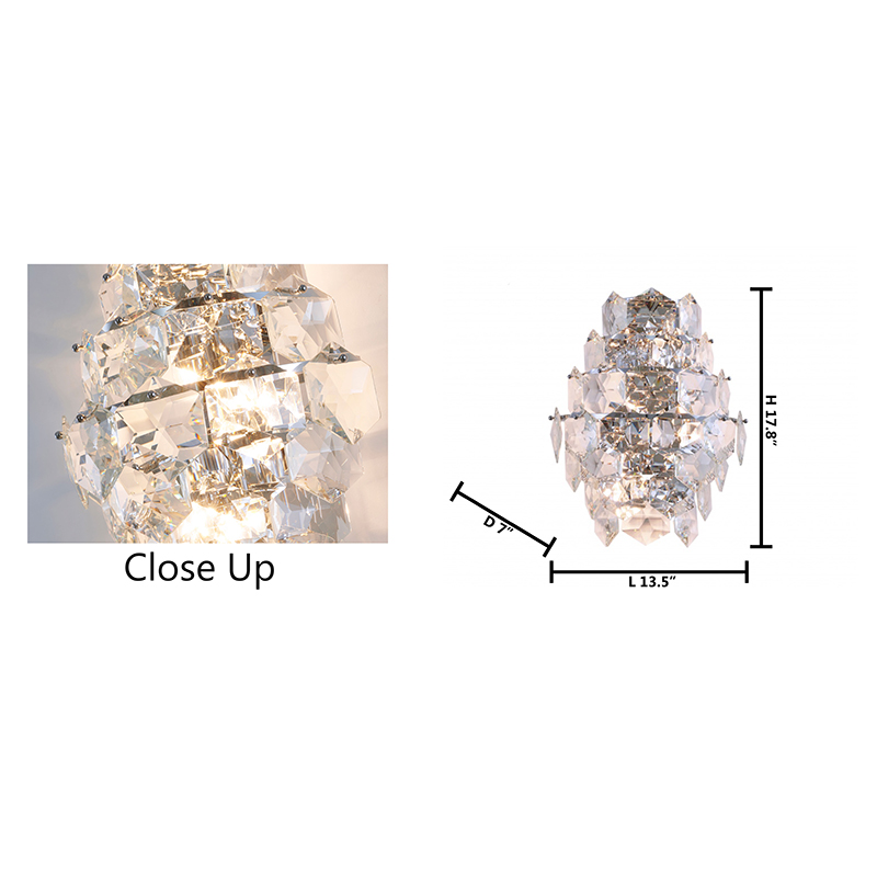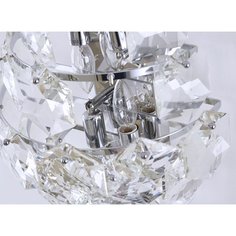 A SEVEN TIER CHROME STAINLESS STEEL FRAME WALL SCONCE WITH CLEAR HANGING CRYSTALS