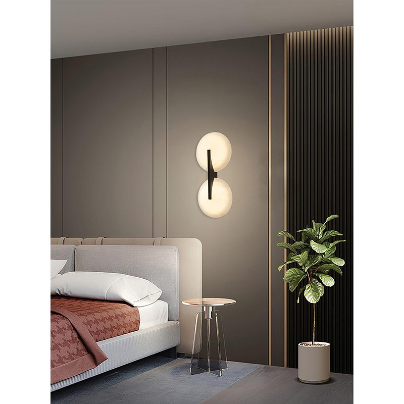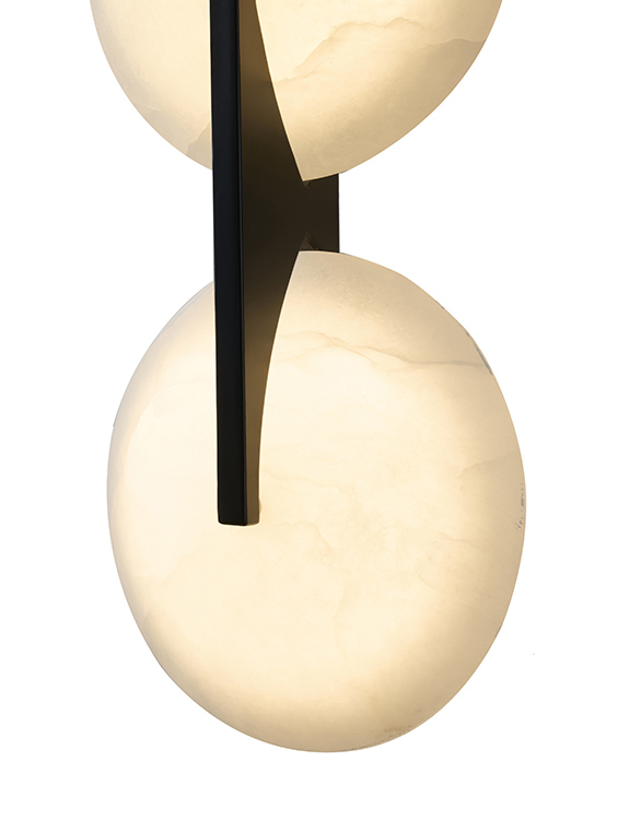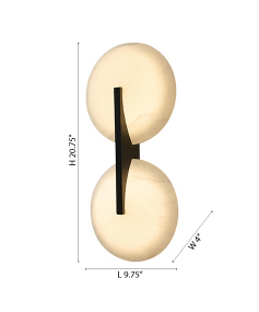 SATIN BLACK METAL LED WALL SCONCE WITH ALABASTER SHADES