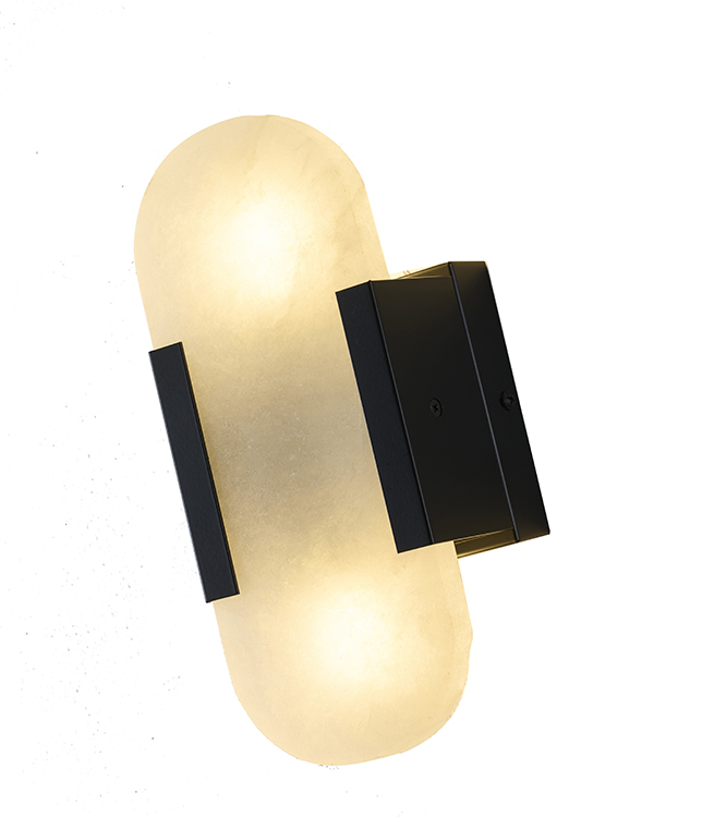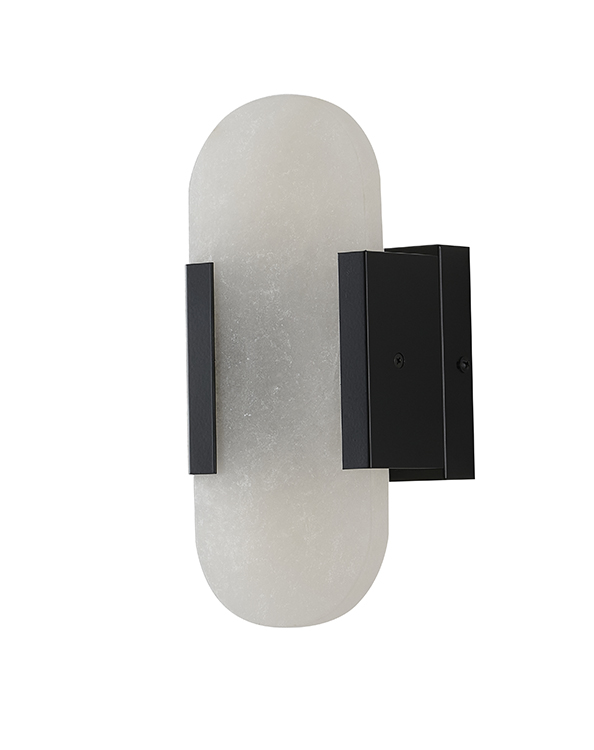 SATIN BLACK METAL LED WALL SCONCE WITH AN ALABASTER SHADE