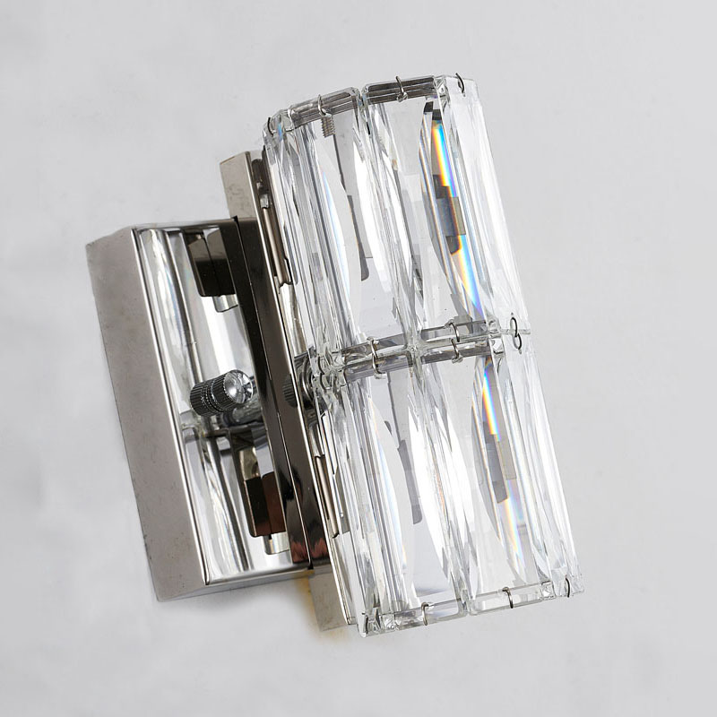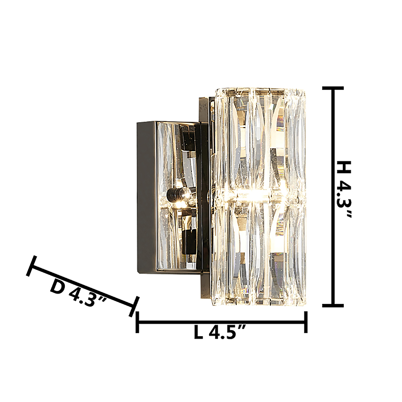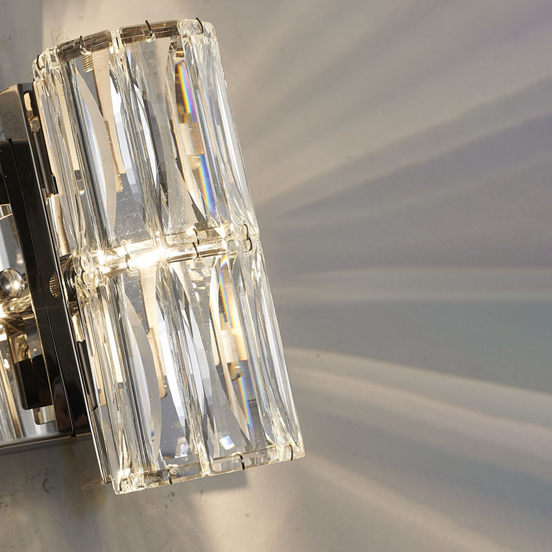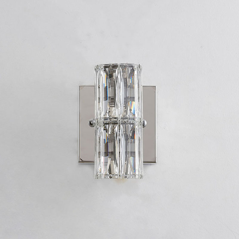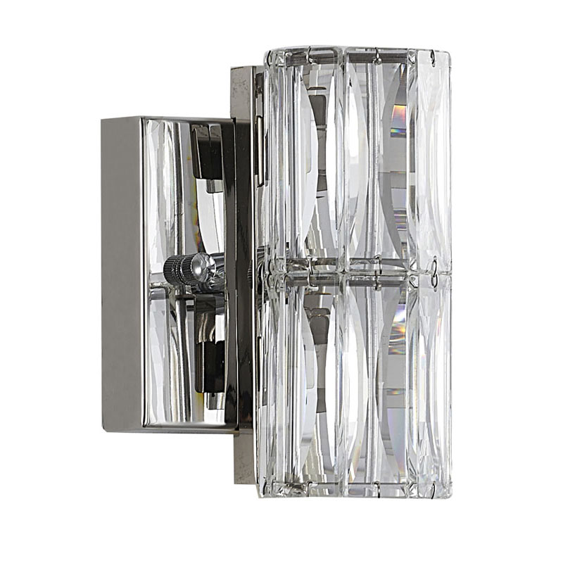 A CLEAR CRYSTAL CYLINDER WALL SCONCE WITH CHROME HARDWARE