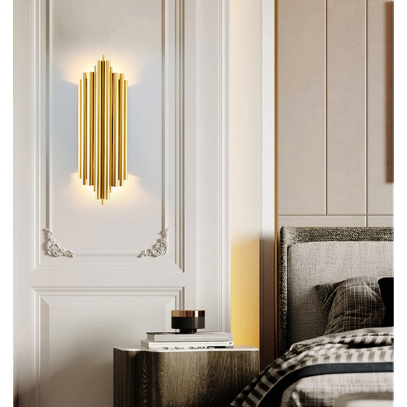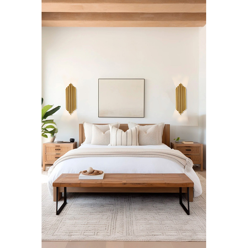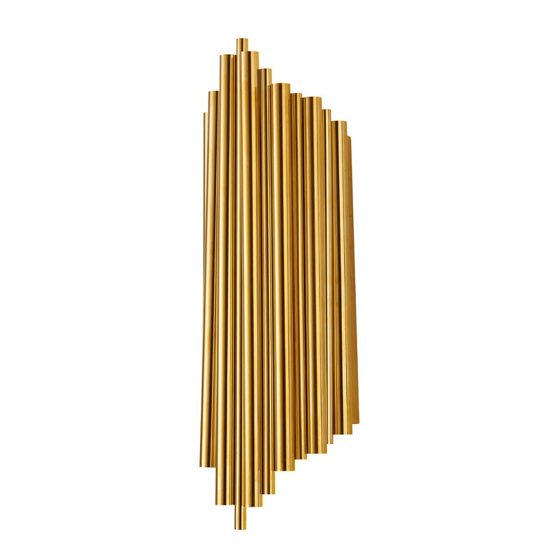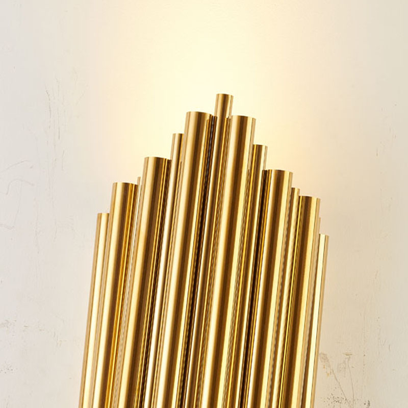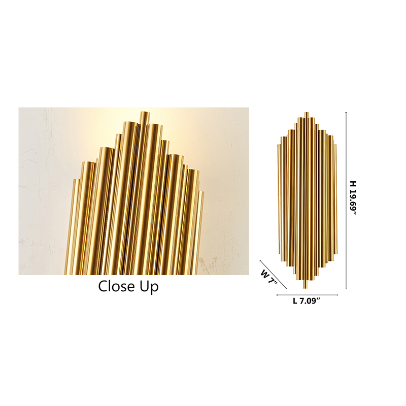 A GOLD STAINLESS STEEL ROD WALL SCONCE WITH UP/DOWN LIGHTING