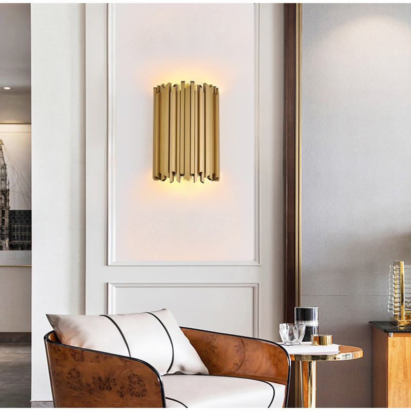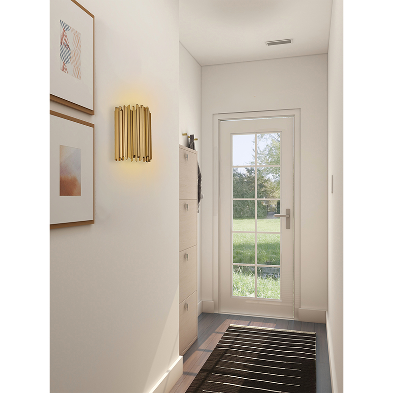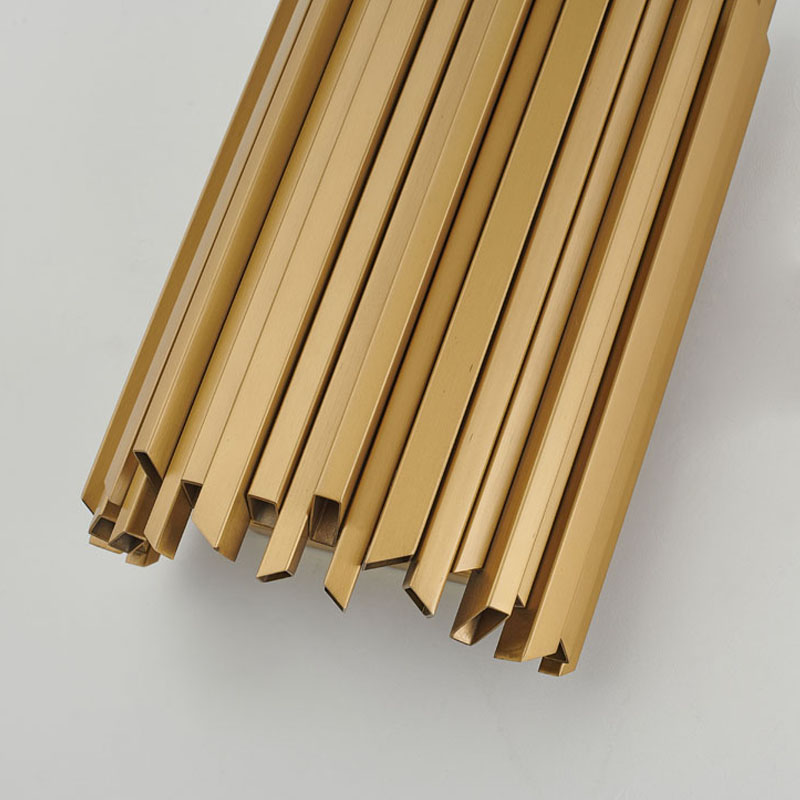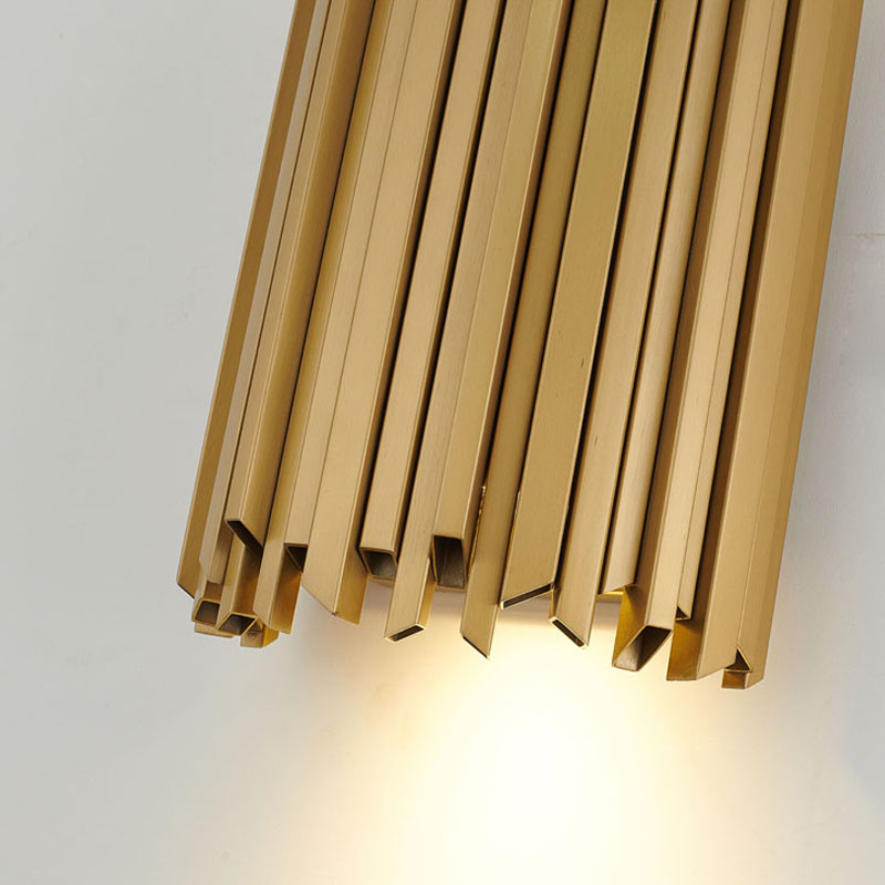 A SATIN BRASS STAINLESS STEEL FRAME ROD WALL SCONCE