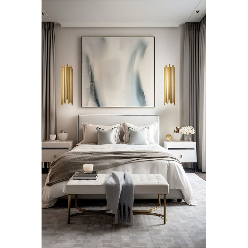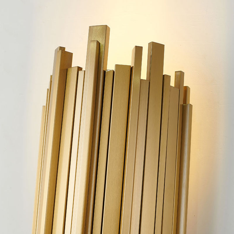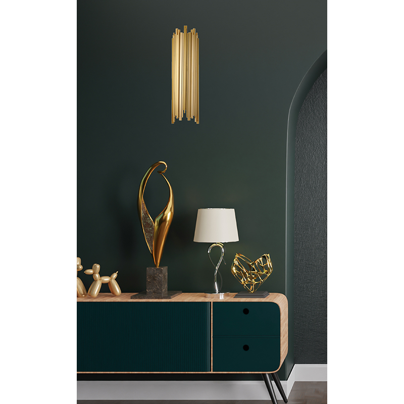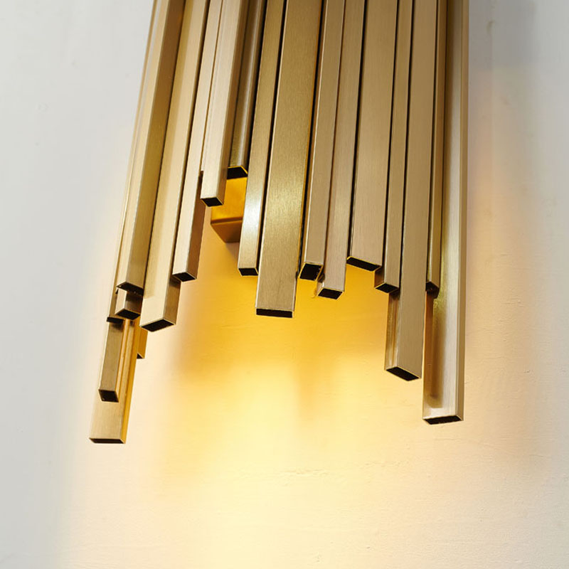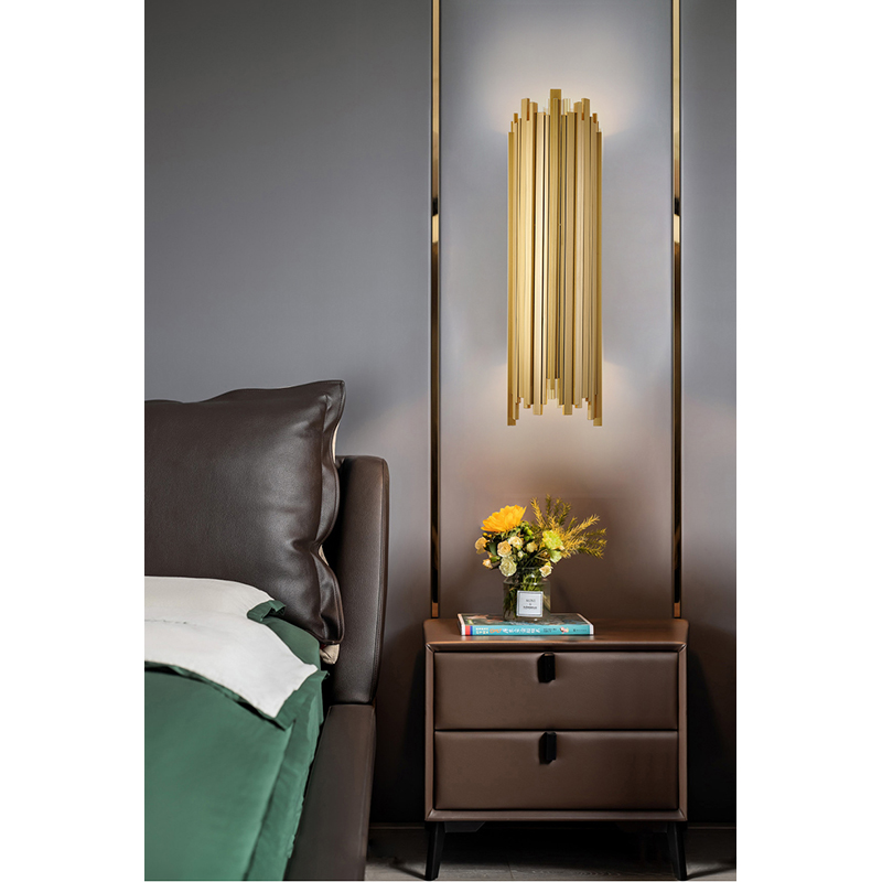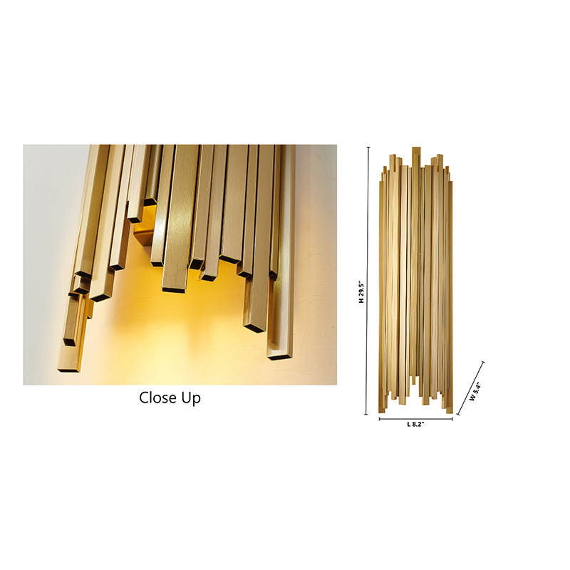 A BRUSHED GOLD HAIRLINE WALL SCONCE WITH UP/DOWN LIGHTING