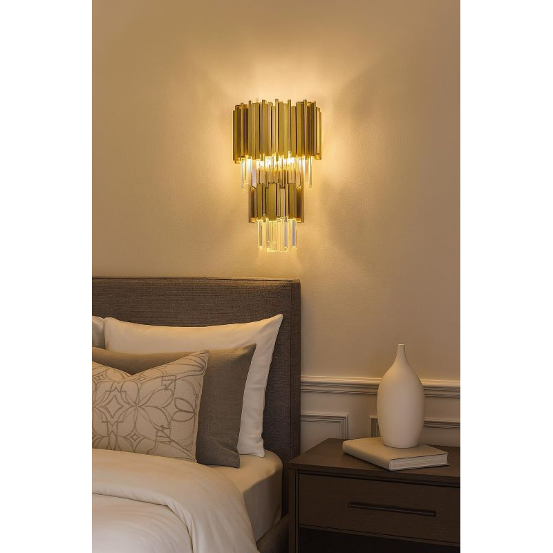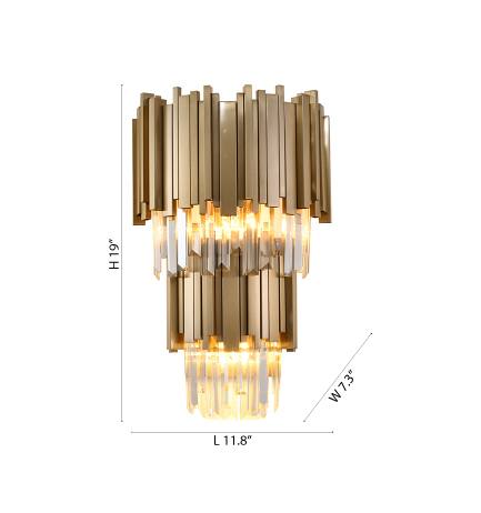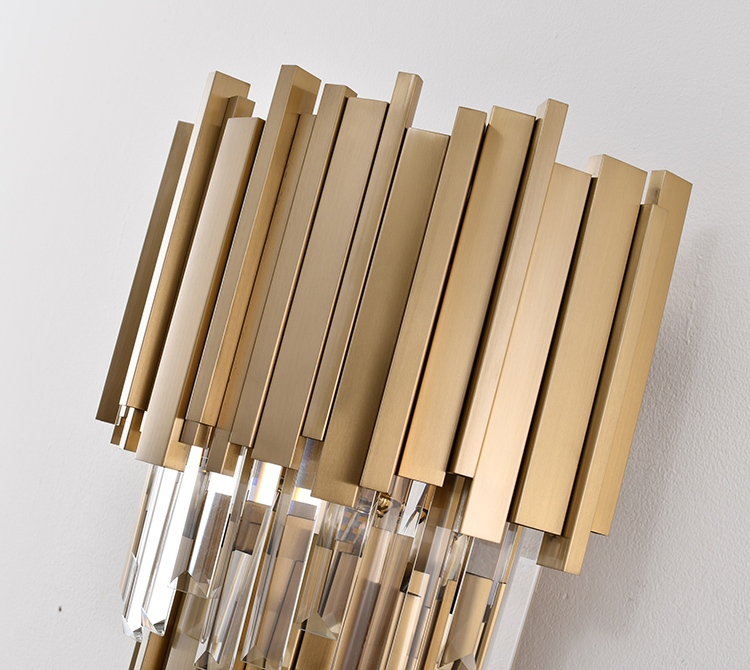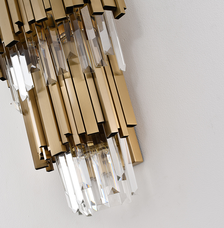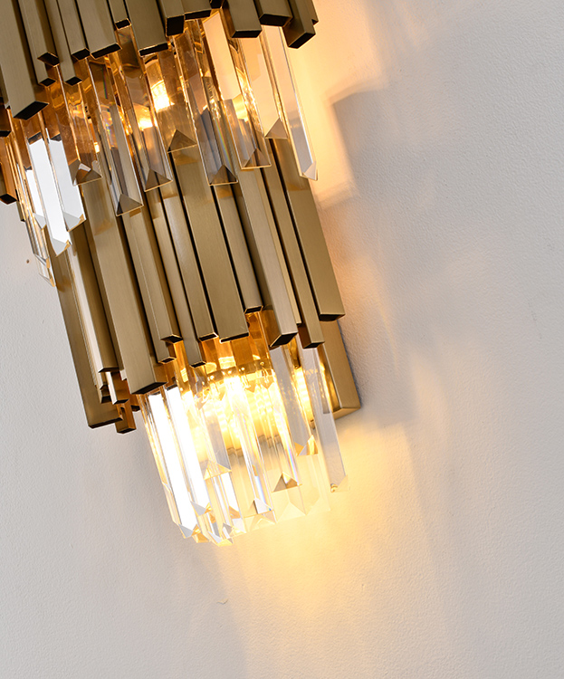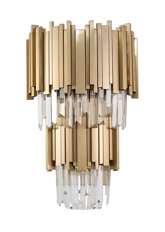 BRUSHED GOLD STAINLESS STEEL WALL SCONCE WITH CLEAR CRYSTALS