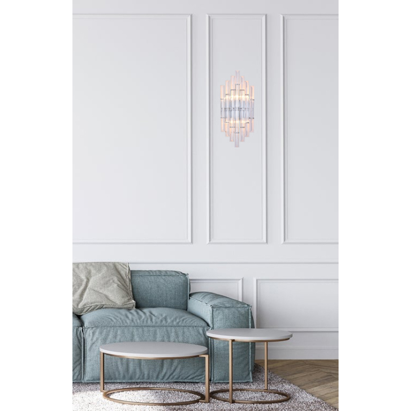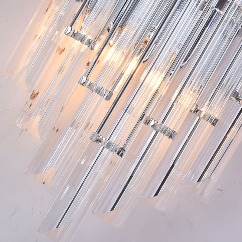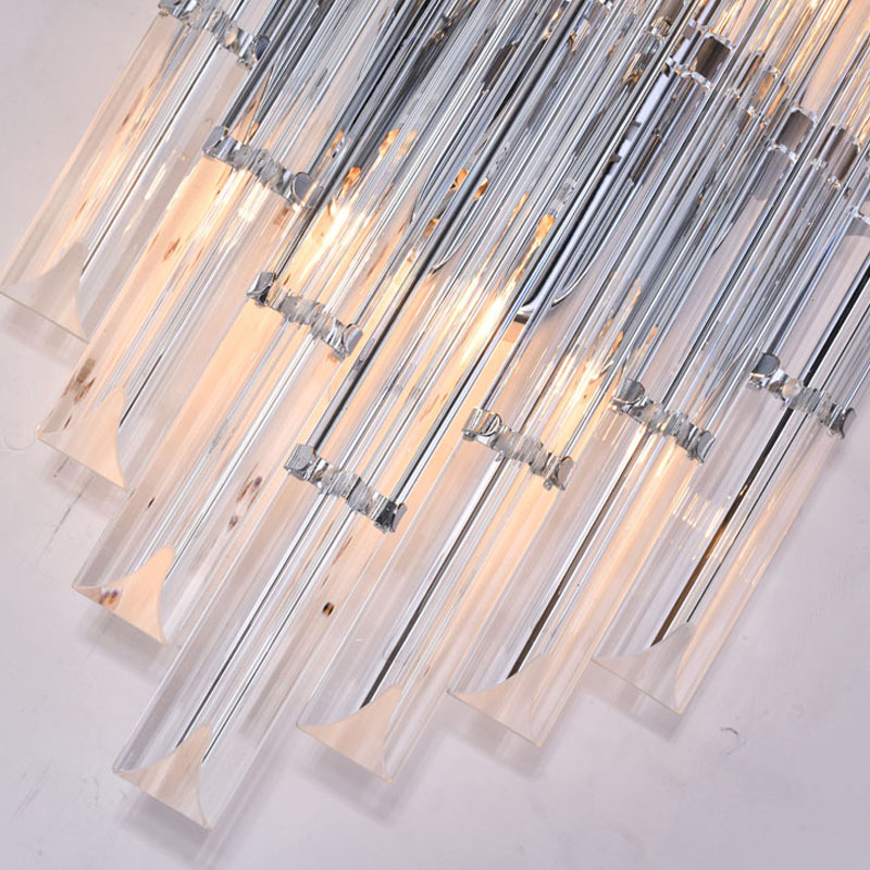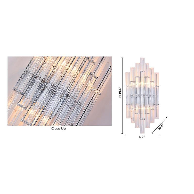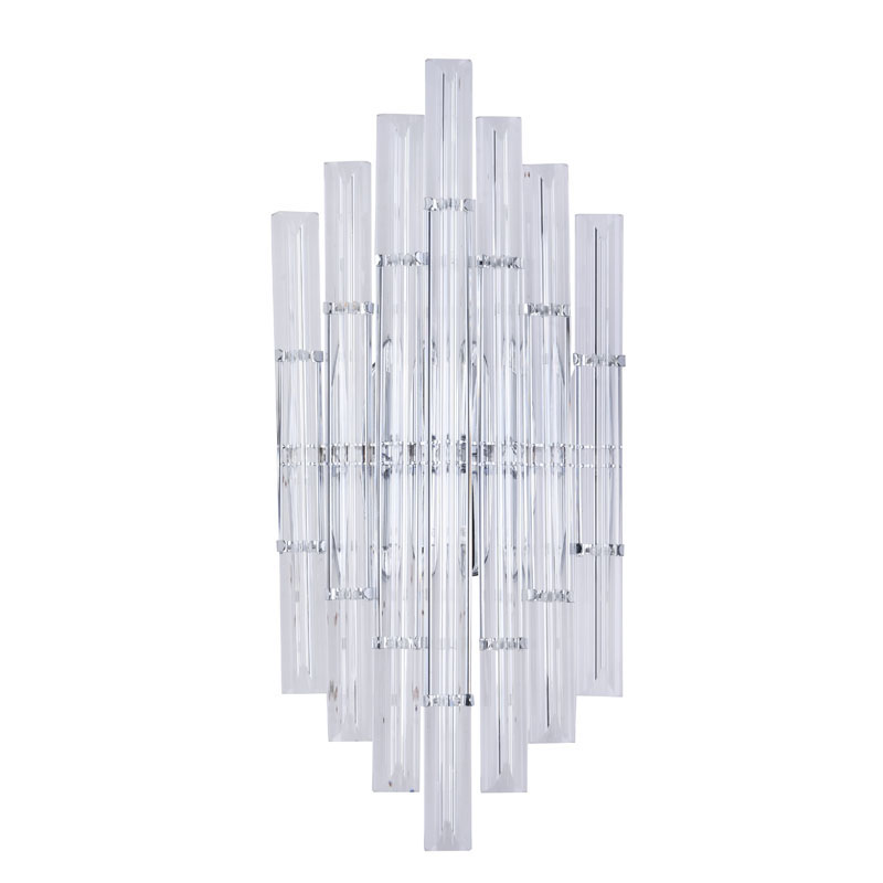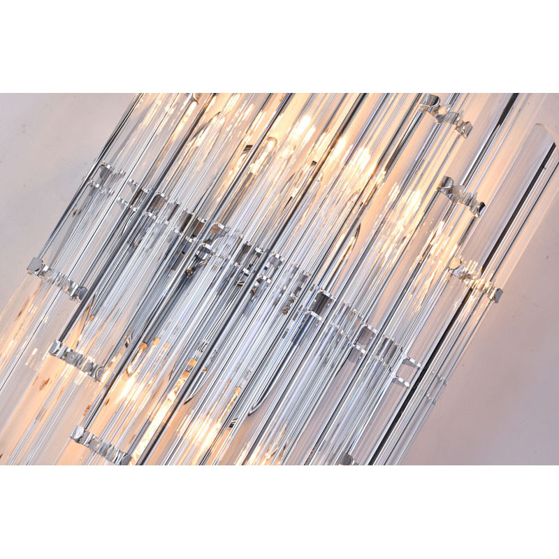 A CLEAR GLASS ROD WALL SCONCE WITH A CHROME METAL FRAME