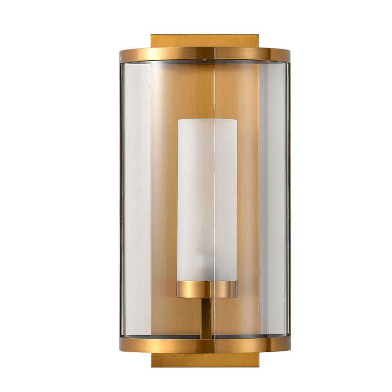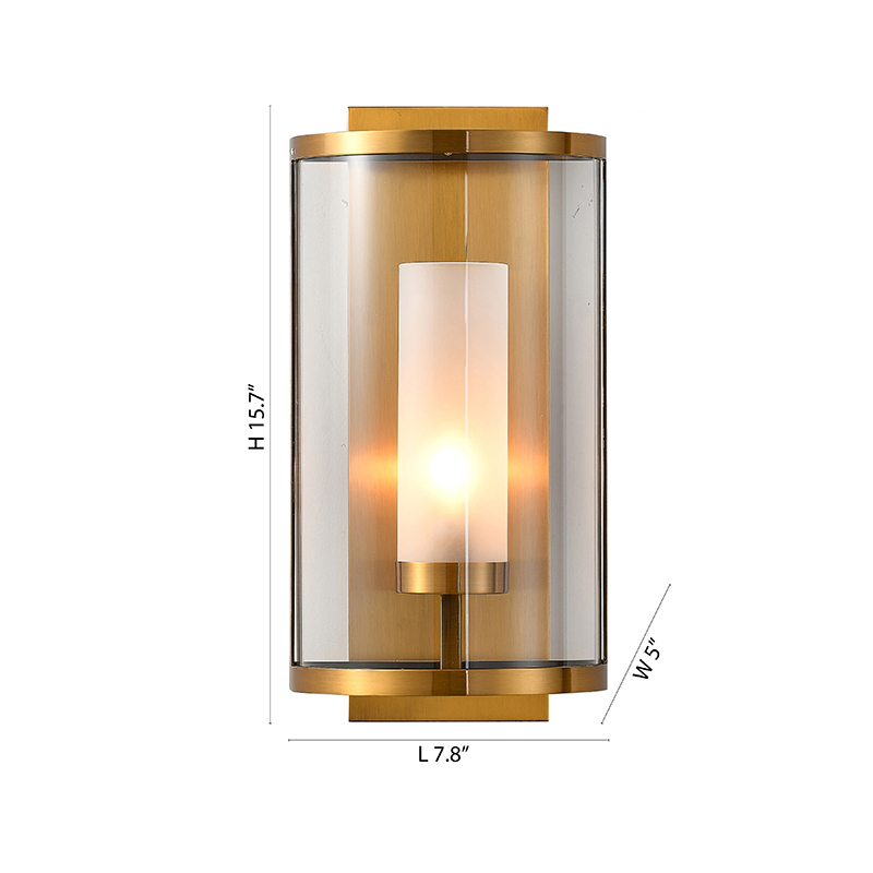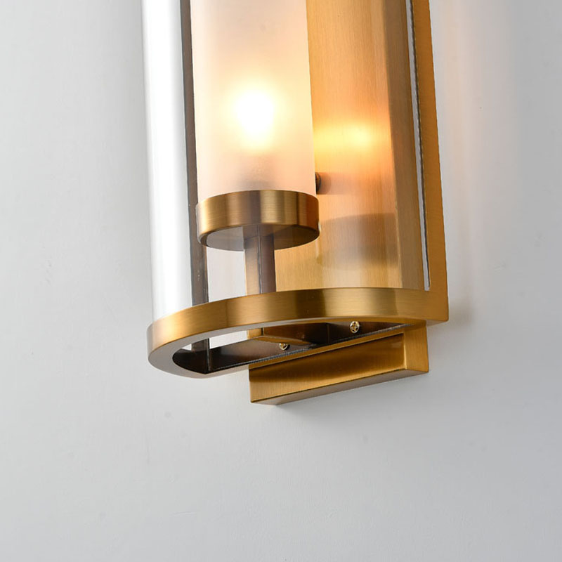 AN ANTIQUE BRASS FRAME WITH A GLASS COVER WALL SCONCE