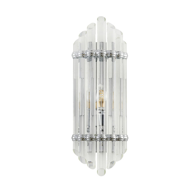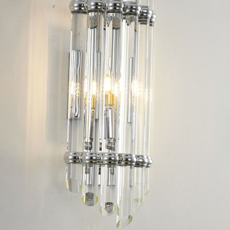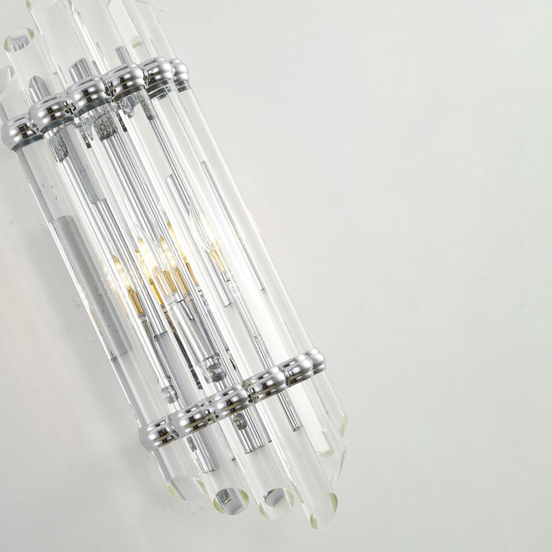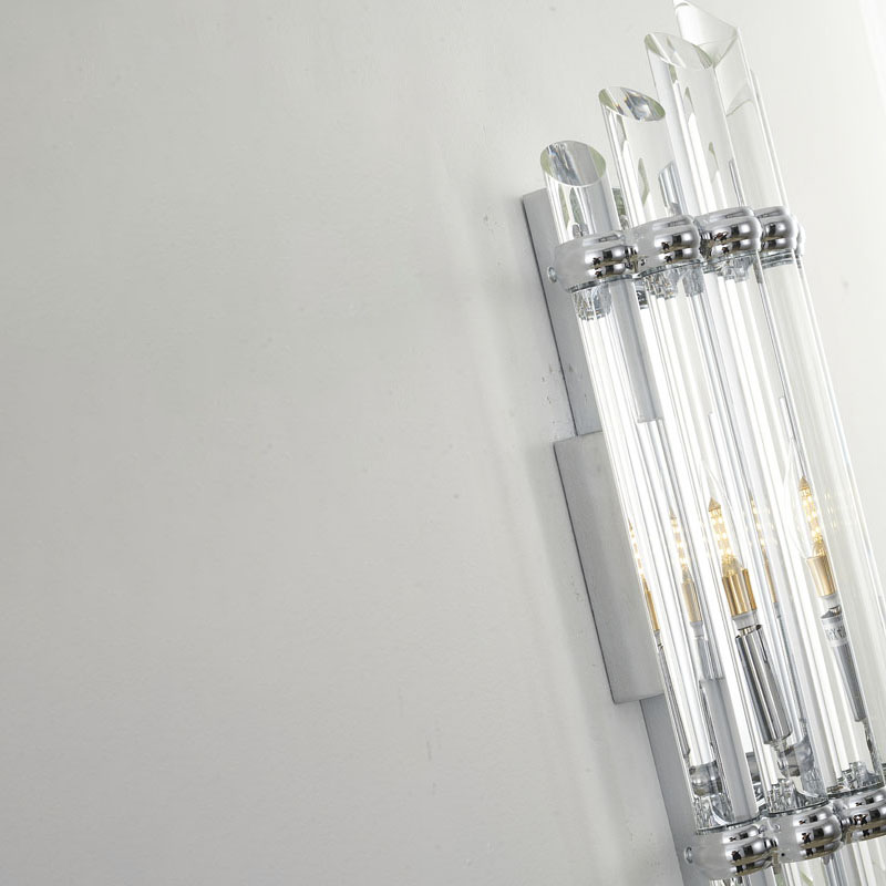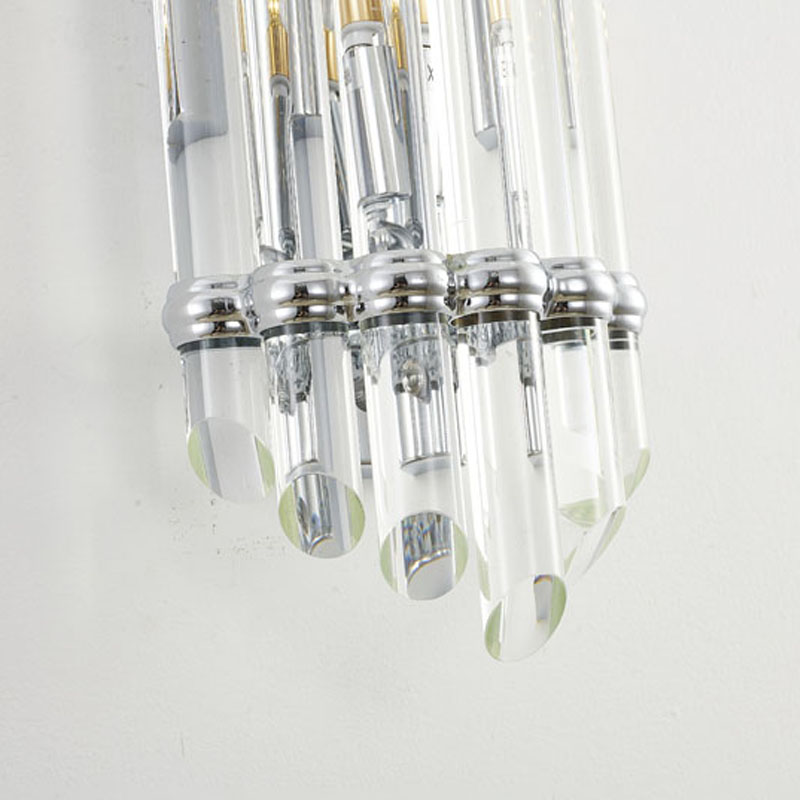 A CHROME FRAME WALL SCONCE WITH CLEAR GLASS RODS