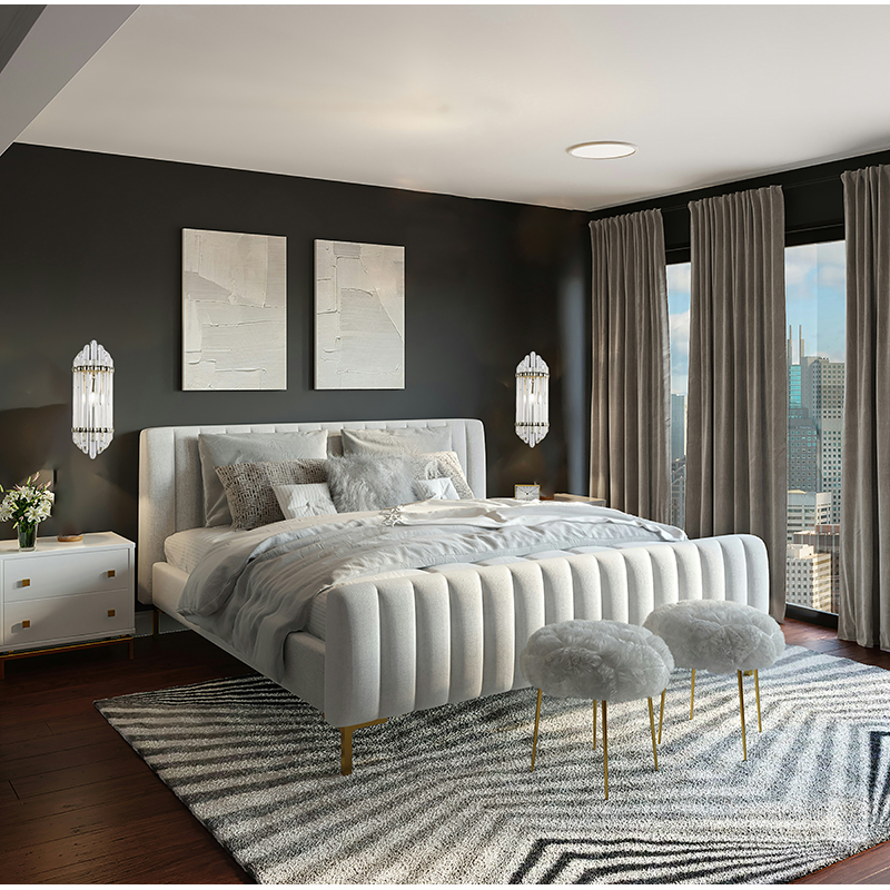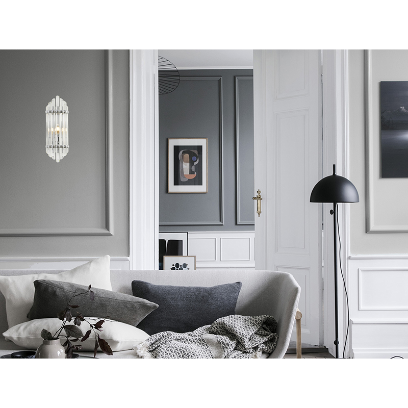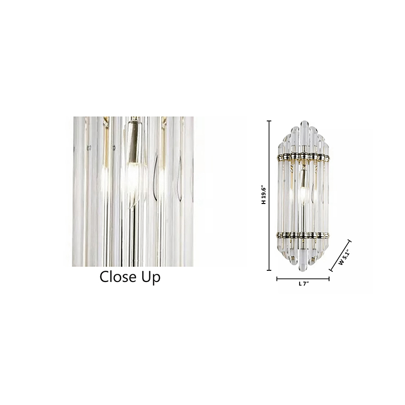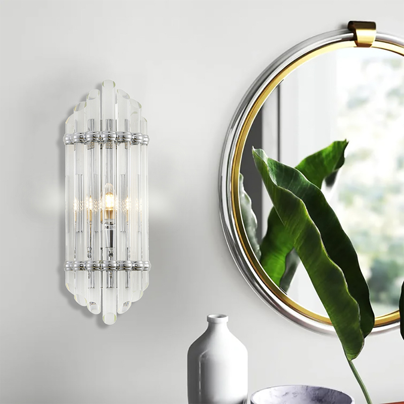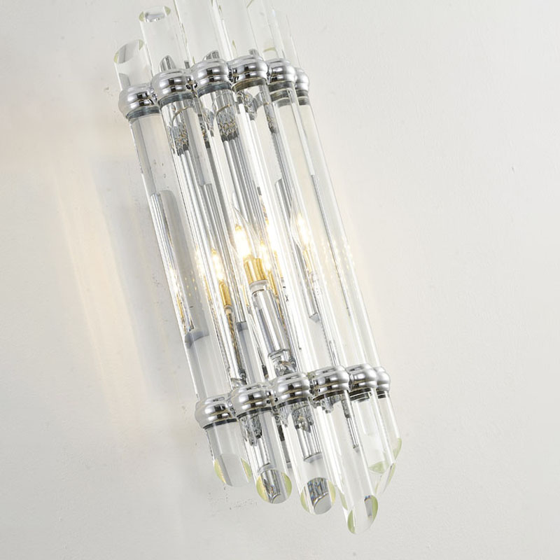 A CHROME FRAME WALL SCONCE WITH CLEAR GLASS RODS