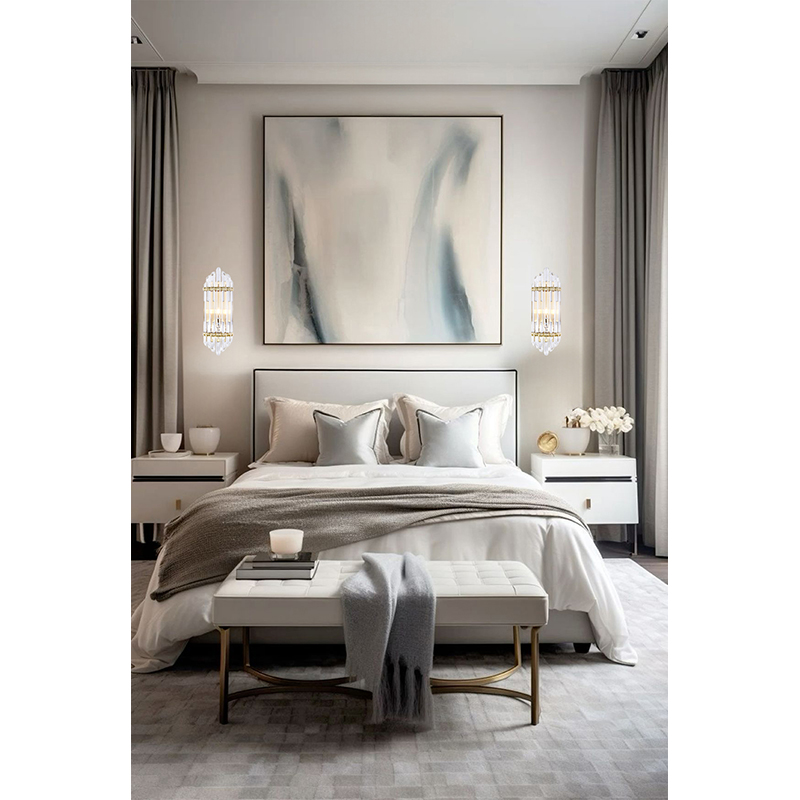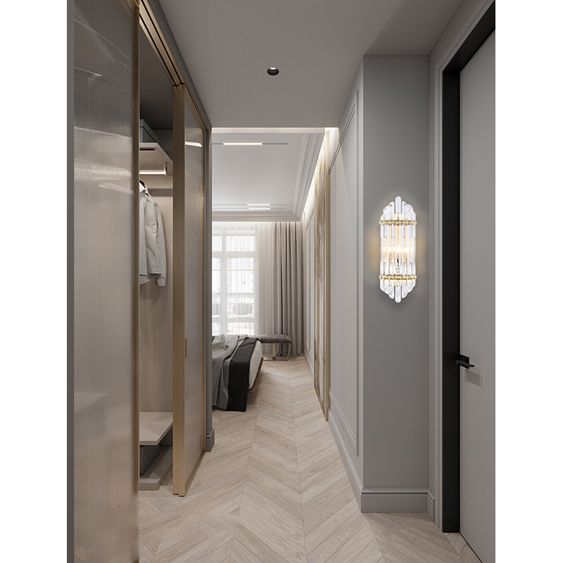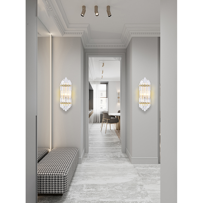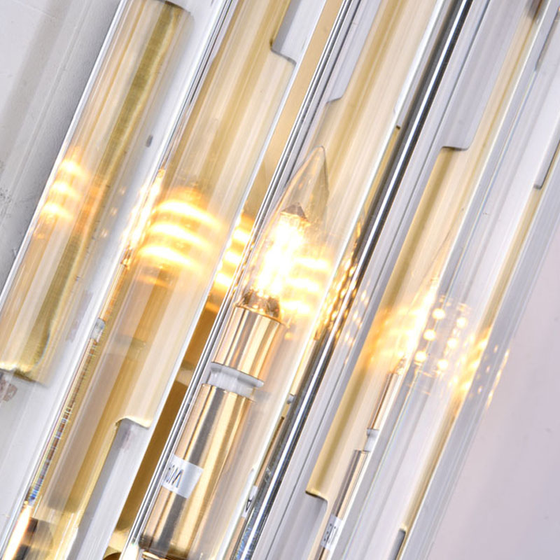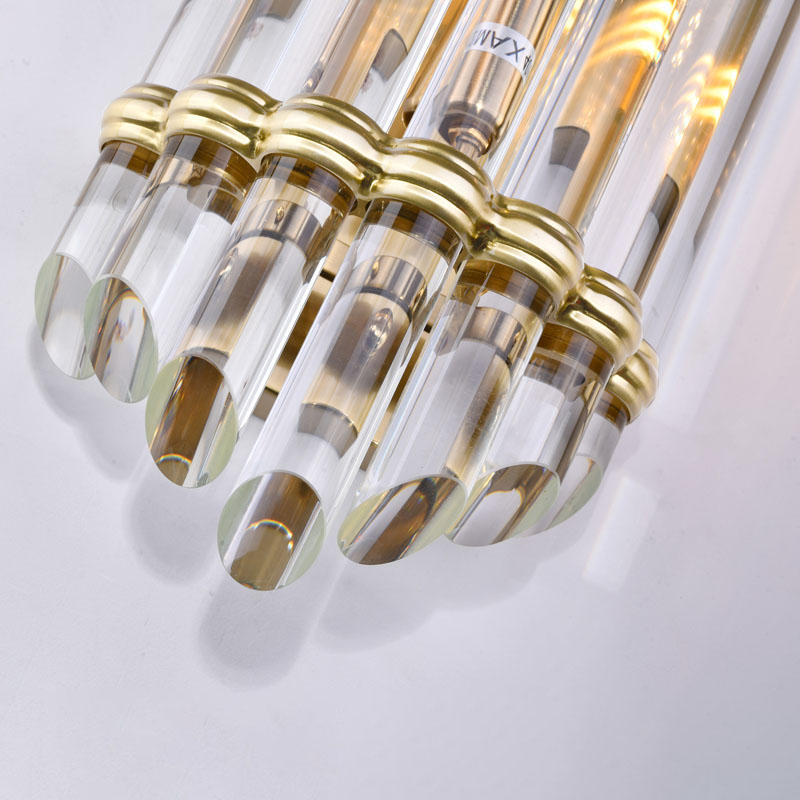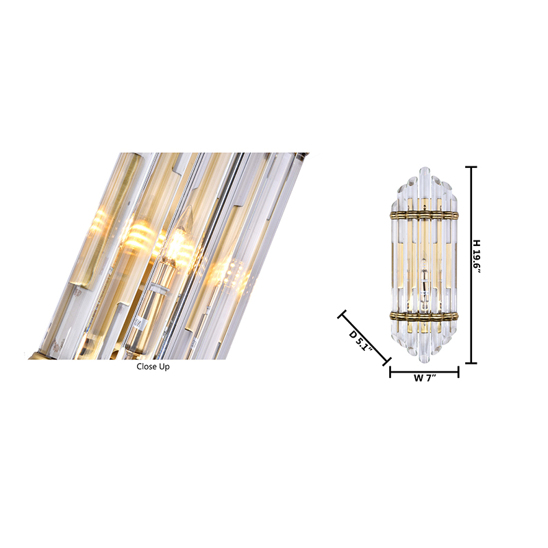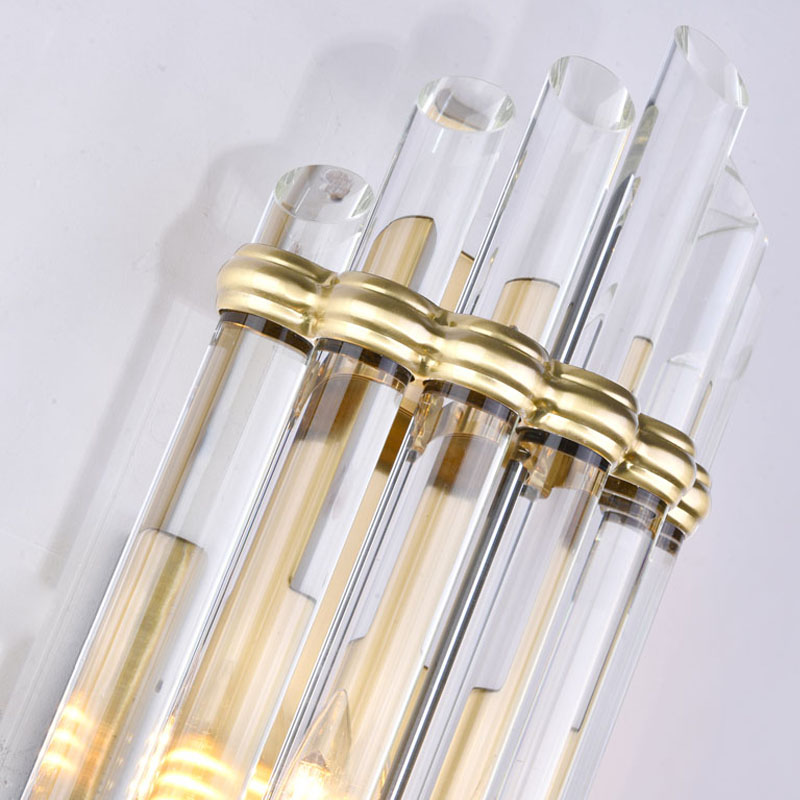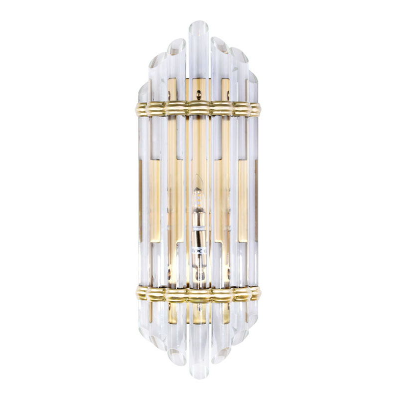 AN ANTIQUE GOLD FRAME WALL SCONCE WITH CLEAR GLASS RODS