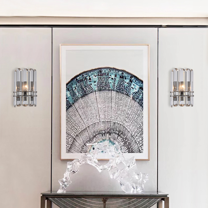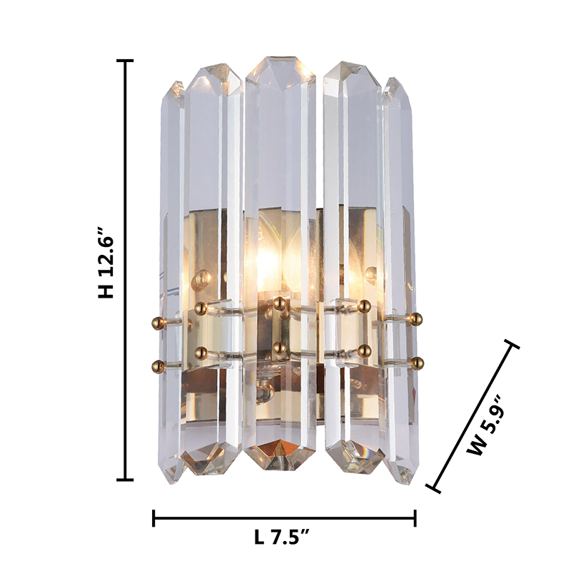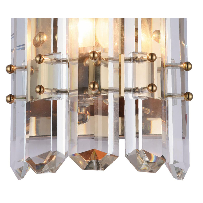 A GOLD FRAME WALL SCONCE WITH CLEAR CRYSTAL PLAQUES