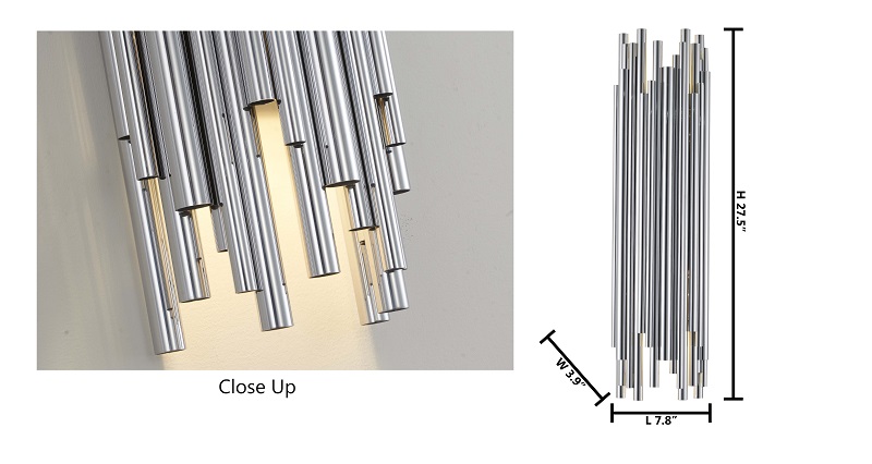 A SHINY NICKEL ROD STAINLESS STEEL WALL SCONCE