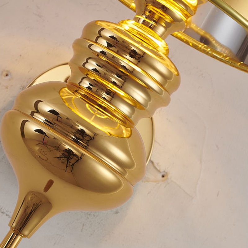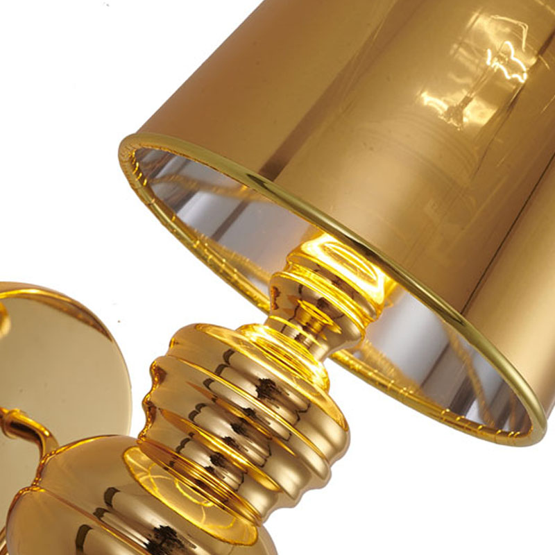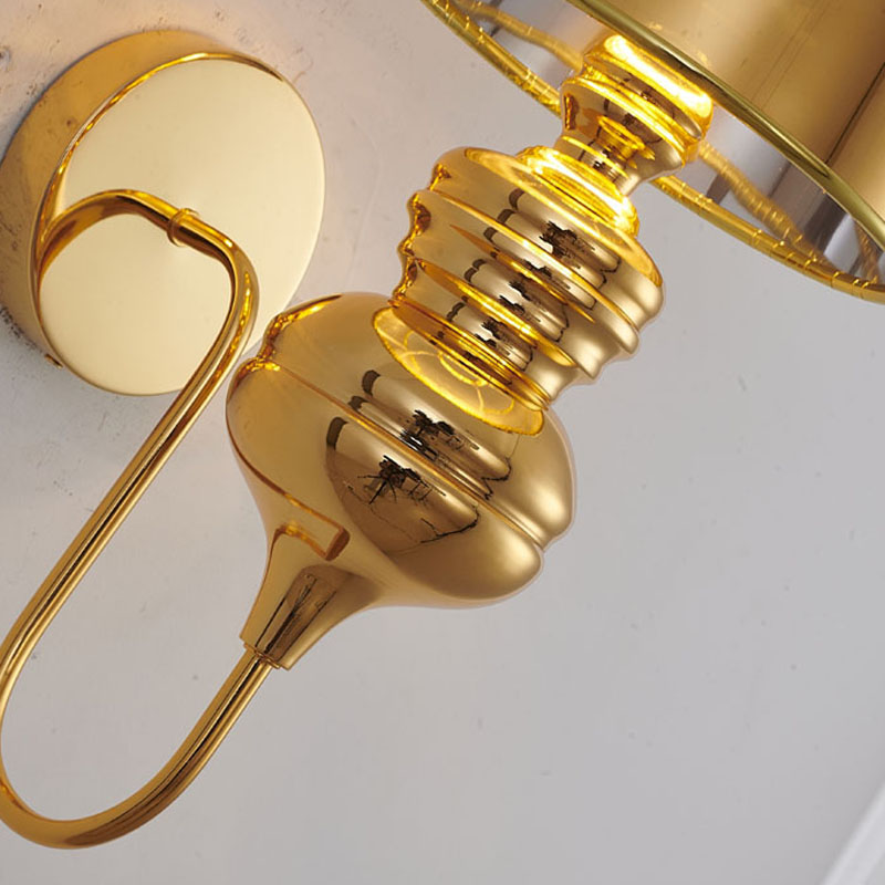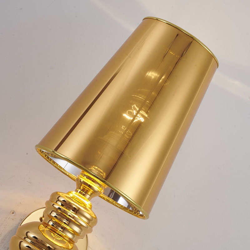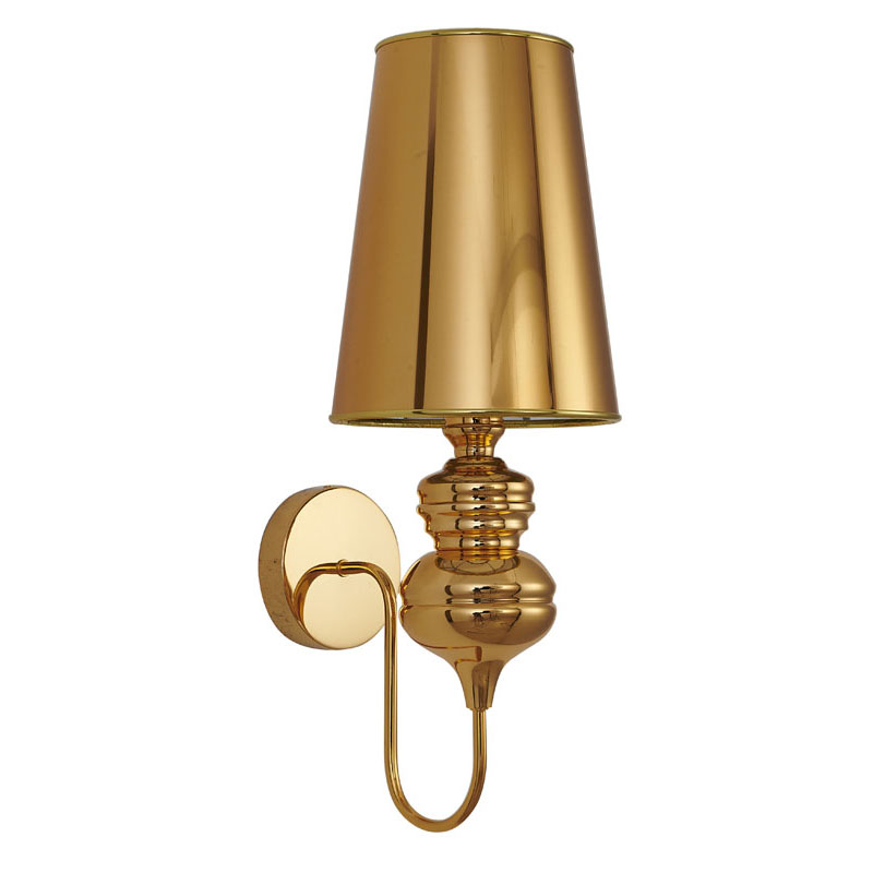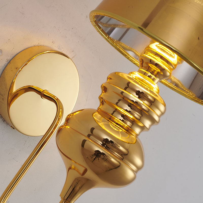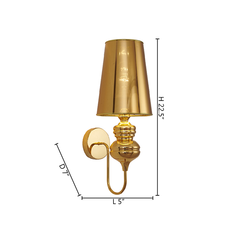 A POLISHED GOLD STEEL SHADE WALL SCONCE