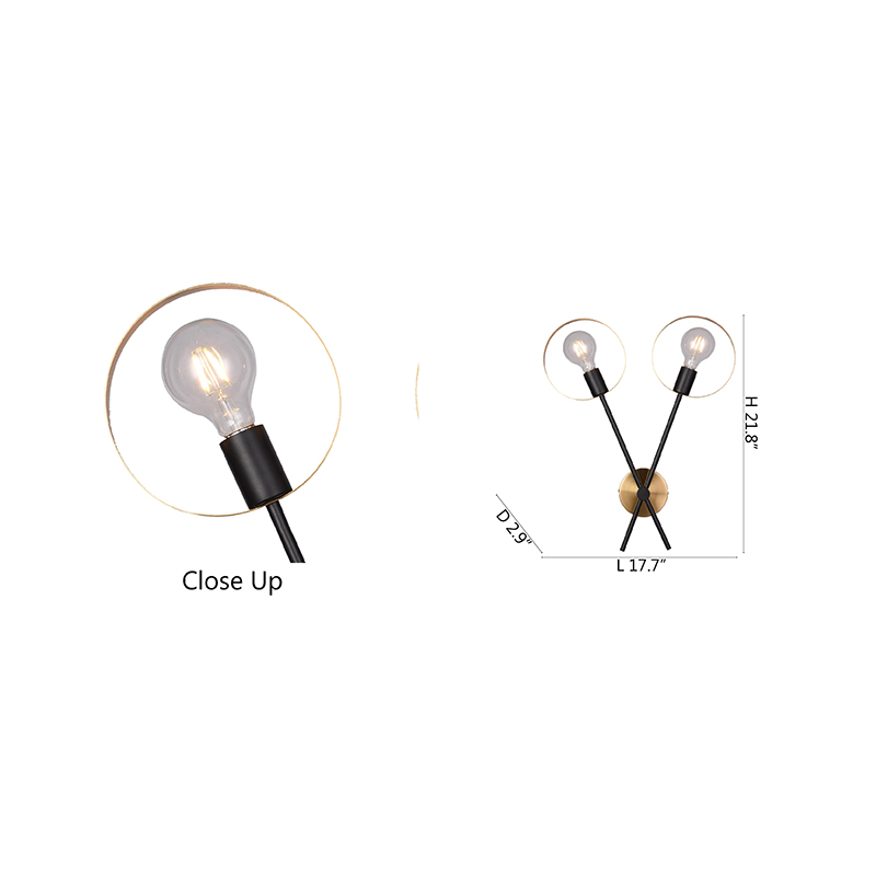 A BLACK & BRUSHED BRASS TWO LIGHT WALL SCONCE