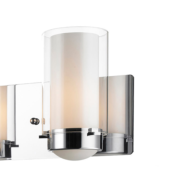 WALL SCONCE WITH WHITE CYLINDER GLASS INSIDE AND CHROME FRAME