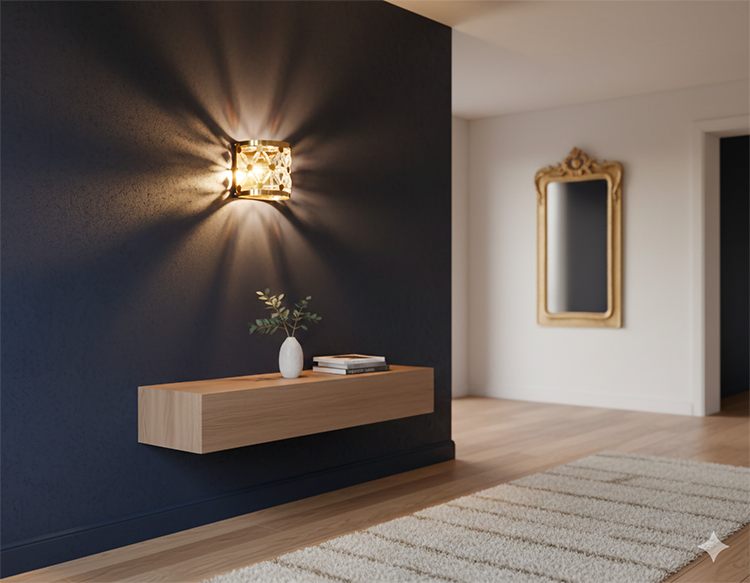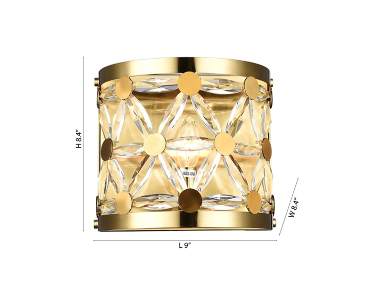 A COPPER FRAME WALL SCONCE WITH CLEAR CRYSTAL STAR SHAPED DETAILING