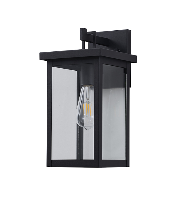 MATTE BLACK IRON WALL SCONCE WITH A CLEAR GLASS SHADE