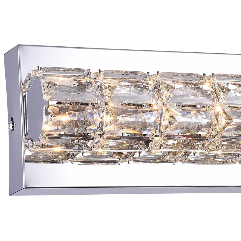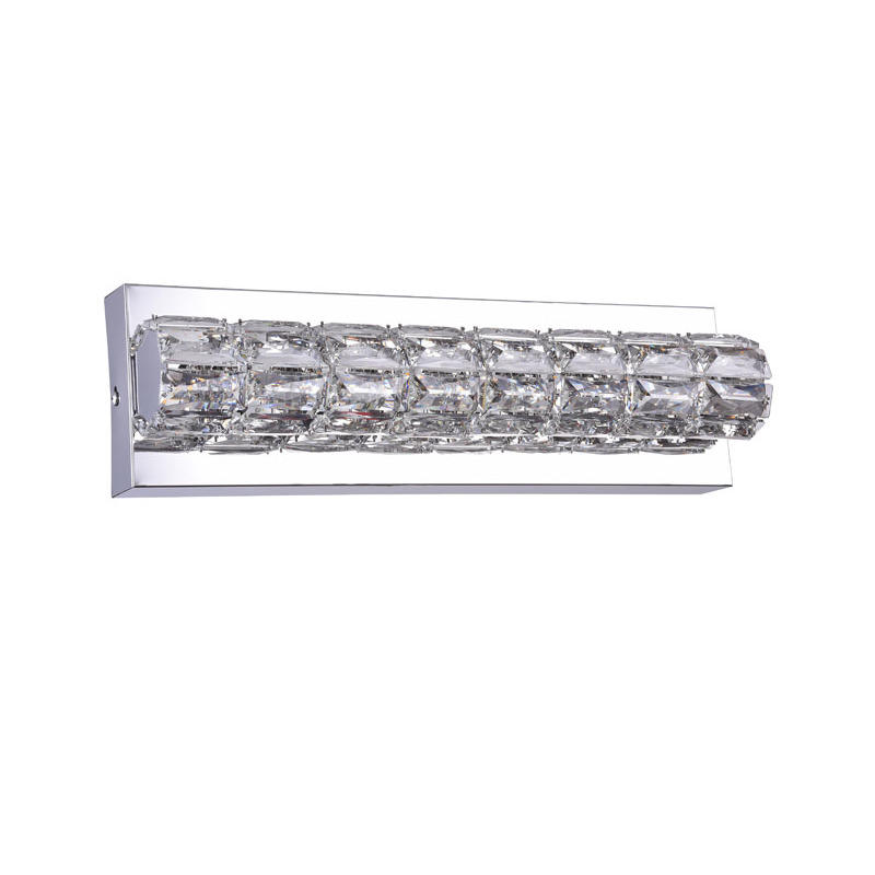 A CHROME FRAME LED WALL SCONCE WITH CLEAR CRYSTALS