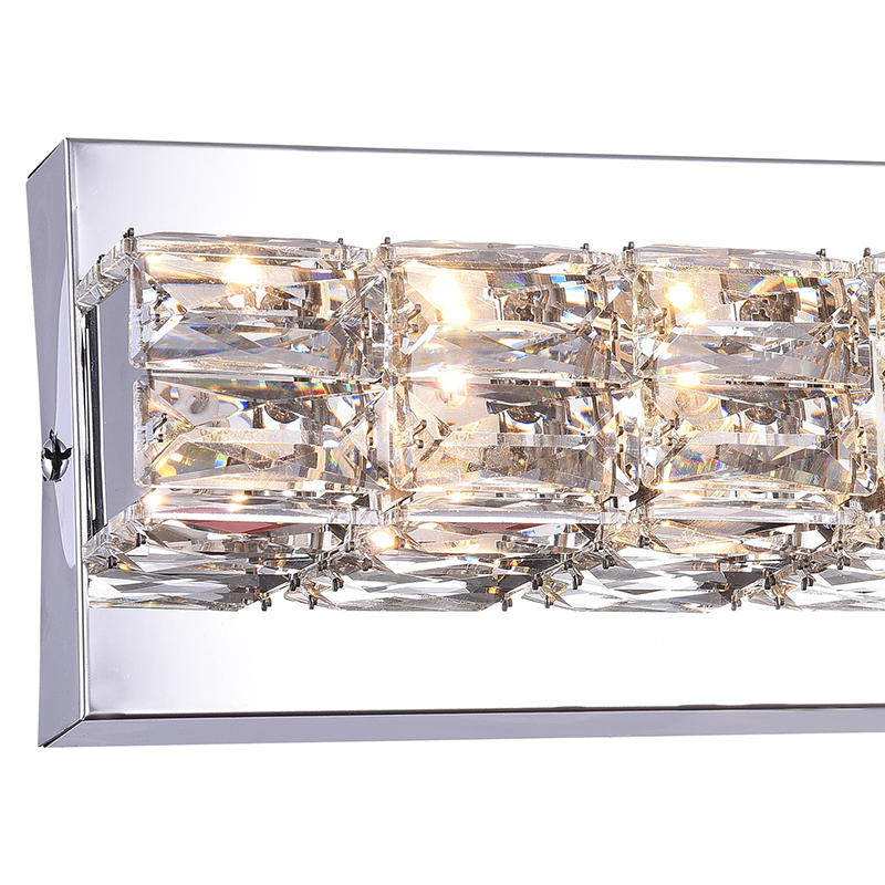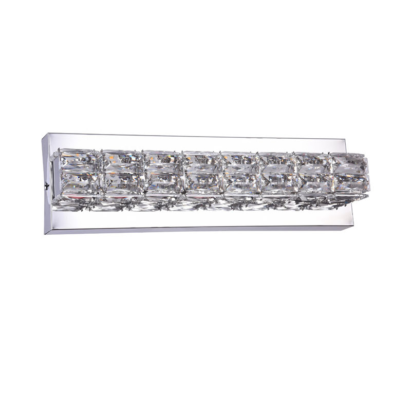 A CHROME FRAME LED WALL SCONCE WITH CLEAR CRYSTALS