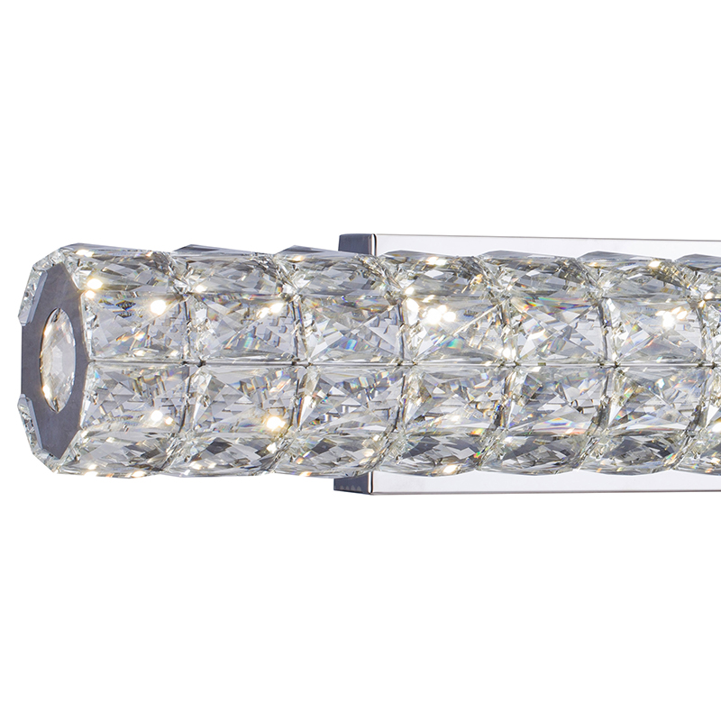 A CLEAR CRYSTAL CYLINDER WALL SCONCE WITH A CHROME FRAME